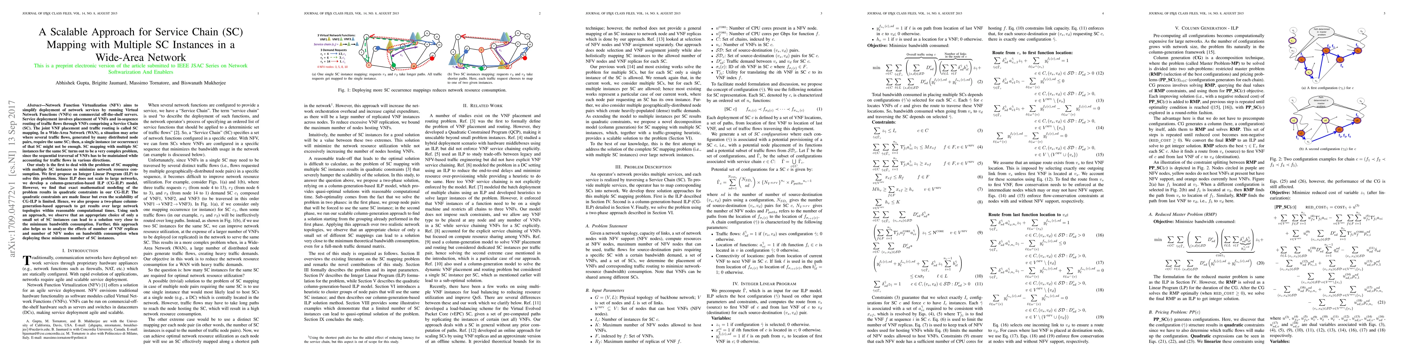 This paper proposes scalable solutions for Service Chain (SC) mapping in Wide-Area Networks (WANs) where multiple SC instances are needed. It introduces an Integer Linear Program (ILP) and a column-generation-based ILP (CG-ILP) to address the complex problem of maintaining sequential VNF traversal while optimizing resource usage. The study finds that a two-phase column-generation approach can efficiently determine a minimal set of SC instances, achieving near-optimal bandwidth consumption.