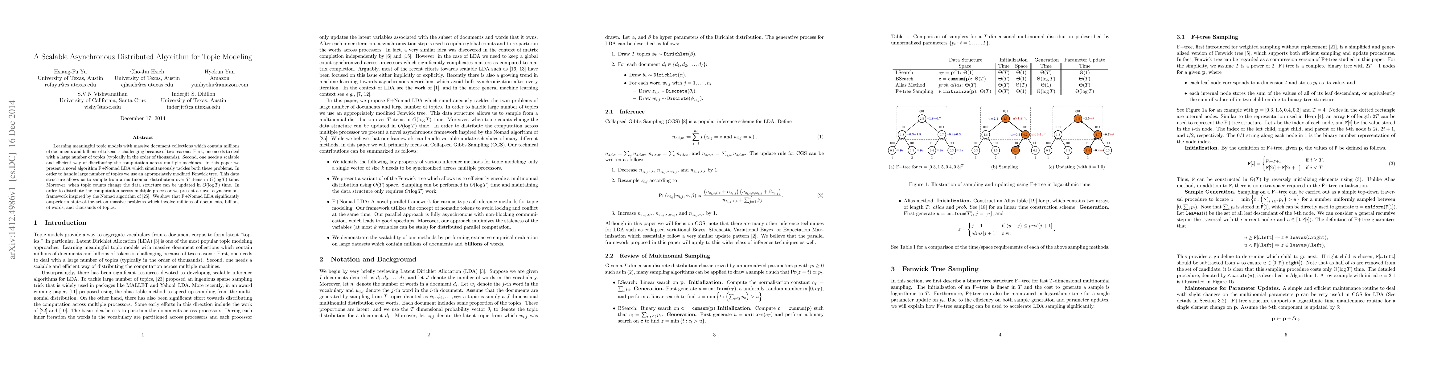 This paper introduces F+Nomad LDA, an algorithm addressing the challenge of learning topic models from massive document collections with millions of documents and billions of tokens. It uses a modified Fenwick tree for efficient sampling from a large number of topics and an asynchronous framework inspired by the Nomad algorithm for scalable computation distribution across multiple machines, significantly outperforming existing methods in handling large-scale problems with thousands of topics.