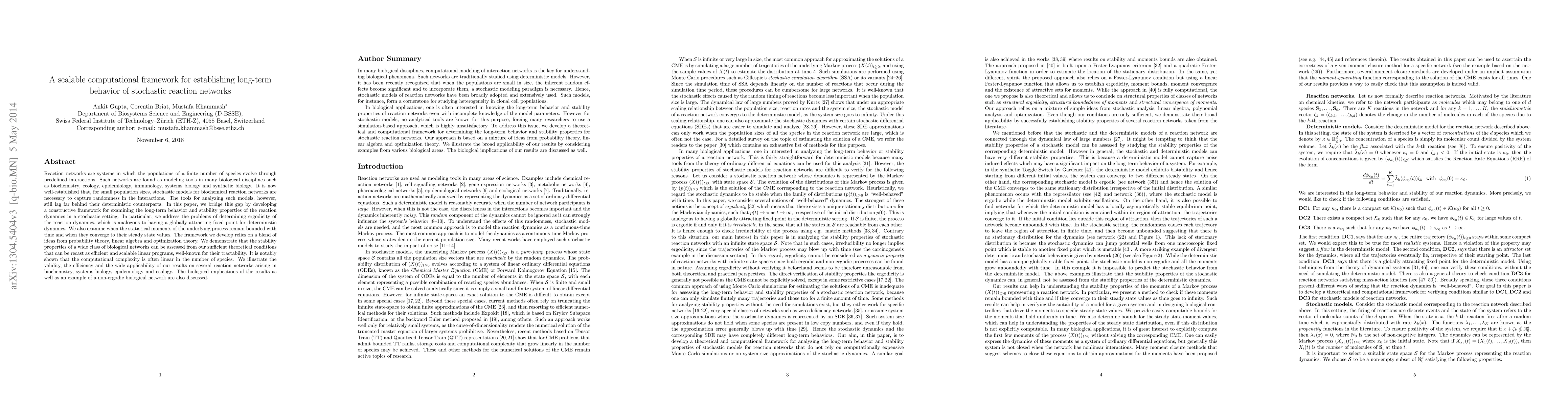 This paper develops a scalable framework to analyze long-term behavior of stochastic reaction networks, enabling efficient assessment of stability properties in biological systems with a focus on linear computational complexity.