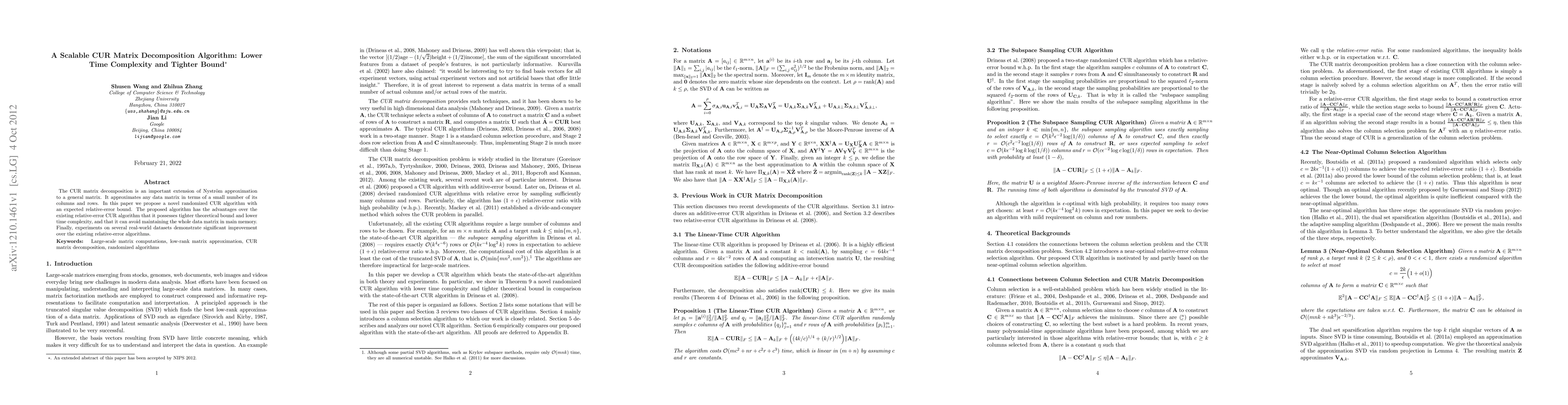 This paper introduces a novel randomized CUR matrix decomposition algorithm with a tighter theoretical bound and lower time complexity compared to existing methods. Experiments show significant improvements over current relative-error CUR algorithms on real-world datasets.