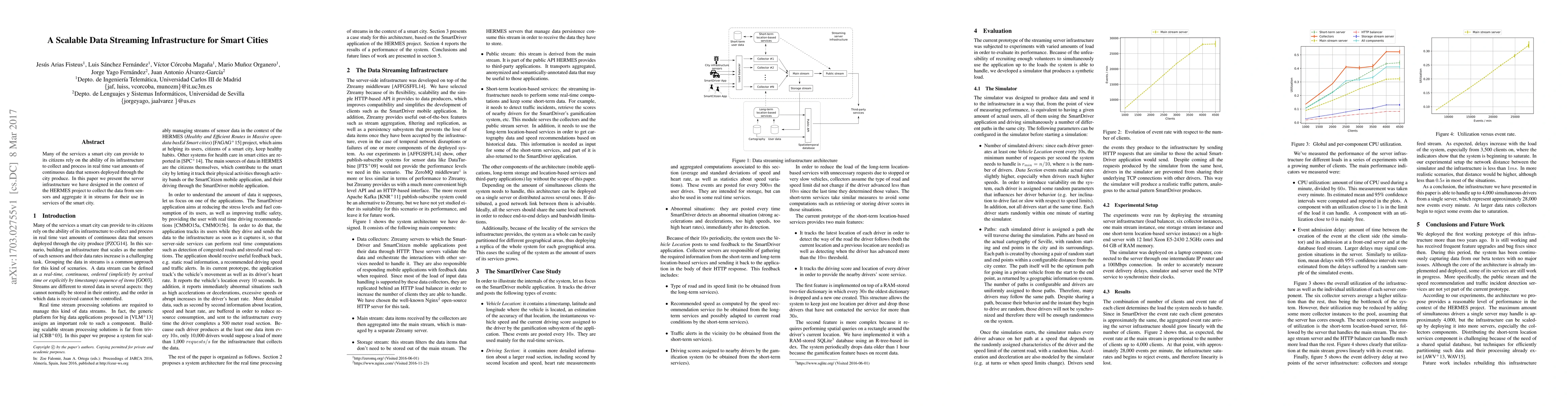 This paper presents a scalable data streaming infrastructure for smart cities to collect and process real-time sensor data in streams. It provides a scalable solution for smart city services to utilize the vast amounts of continuous data produced by sensors.