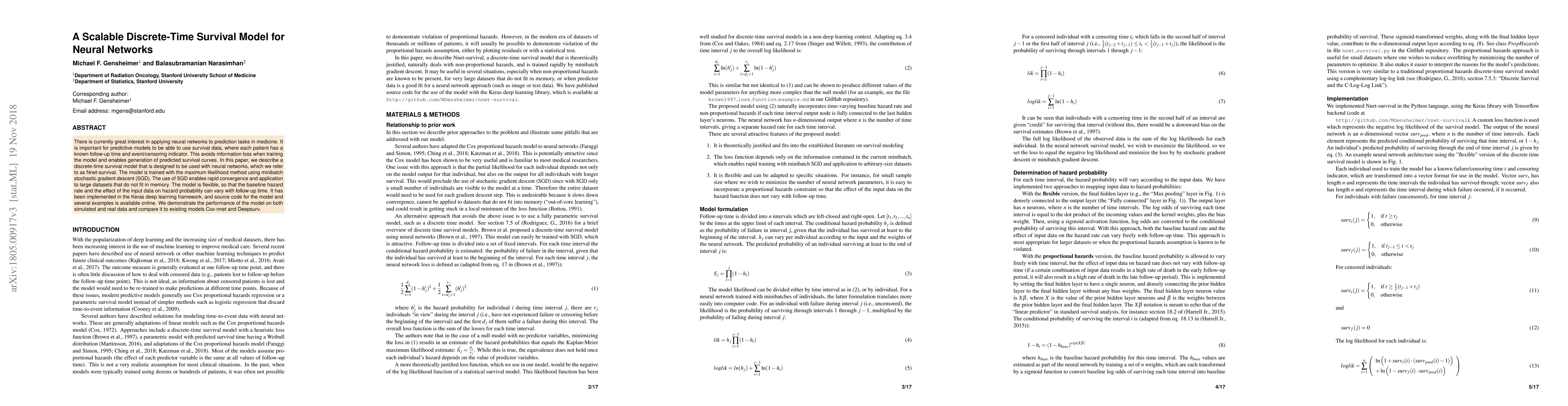 A new neural network model, Nnet-survival, is proposed for predicting patient survival outcomes using discrete-time survival data, offering flexible hazard rate estimation and rapid convergence with minibatch SGD.