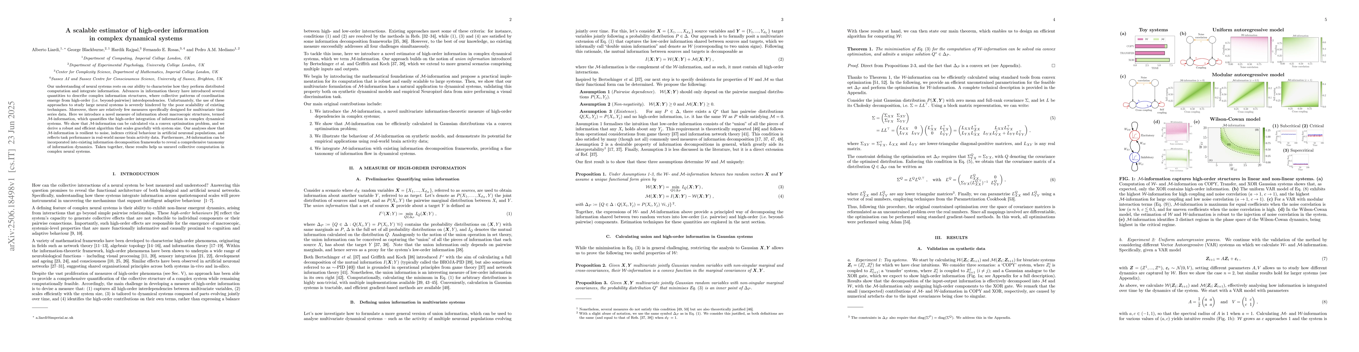 Our understanding of neural systems rests on our ability to characterise how they perform distributed computation and integrate information. Advances in information theory have introduced several quantities to describe complex information structures, where collective patterns of coordination emerge from high-order (i.e. beyond-pairwise) interdependencies. Unfortunately, the use of these approaches to study large neural systems is severely hindered by the poor scalability of existing techniques. Moreover, there are relatively few measures specifically designed for multivariate time series data. Here we introduce a novel measure of information about macroscopic structures, termed M-information, which quantifies the high-order integration of information in complex dynamical systems. We show that M-information can be calculated via a convex optimisation problem, and we derive a robust and efficient algorithm that scales gracefully with system size. Our analyses show that M-information is resilient to noise, indexes critical behaviour in artificial neuronal populations, and reflects task performance in real-world mouse brain activity data. Furthermore, M-information can be incorporated into existing information decomposition frameworks to reveal a comprehensive taxonomy of information dynamics. Taken together, these results help us unravel collective computation in complex neural systems.