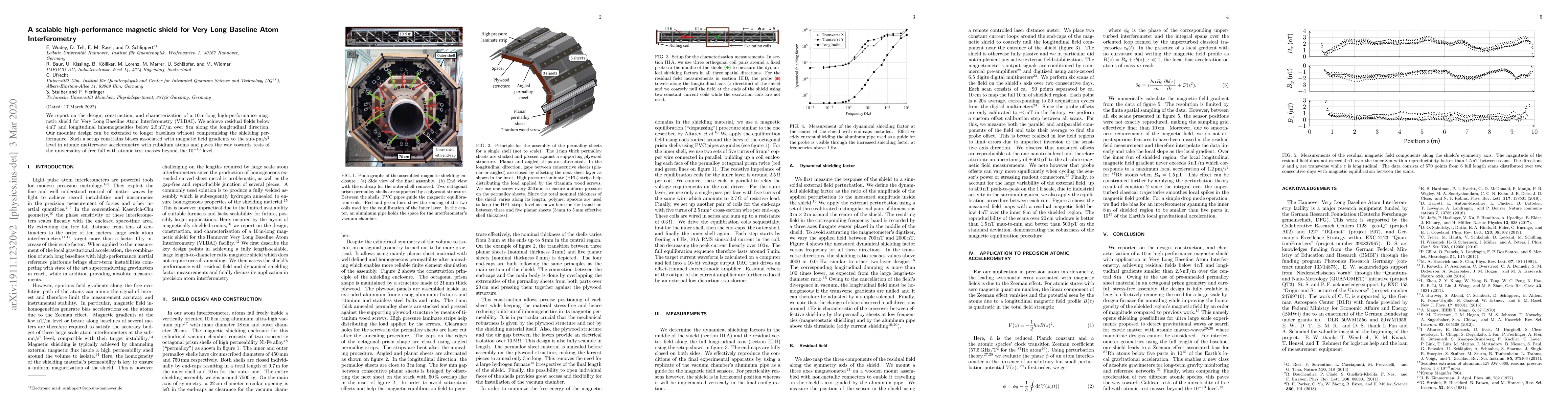 This paper details the development of a scalable, high-performance magnetic shield for Very Long Baseline Atom Interferometry, achieving residual fields below 4 nT and inhomogeneities below 2.5 nT/m over 8 m, which significantly reduces magnetic field gradient biases in atomic matterwave accelerometry.