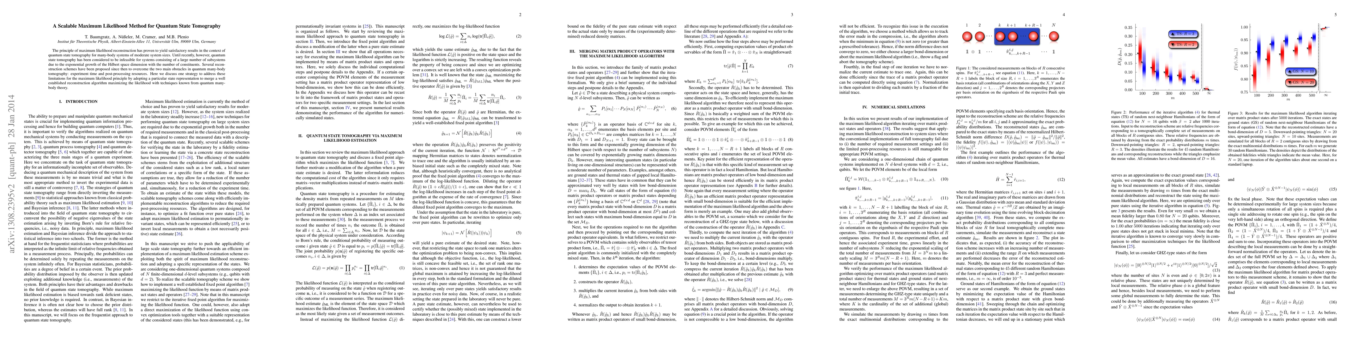 The research introduces a scalable maximum likelihood method for quantum state tomography by merging a well-established reconstruction algorithm with techniques from quantum many-body theory, focusing on a particular state representation to address limitations in experiment time and postprocessing resources.