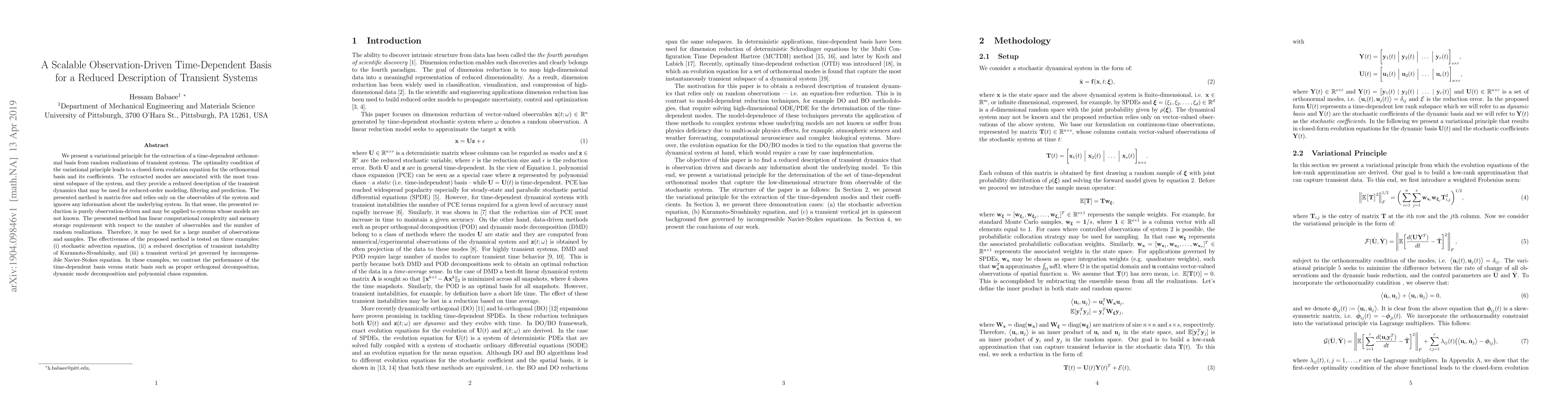 This paper introduces a scalable, observation-driven method for extracting a time-dependent orthonormal basis from transient system data, providing a reduced description for modeling, filtering, and prediction. The method is matrix-free, computationally efficient, and tested on three examples to demonstrate its effectiveness against static basis methods.