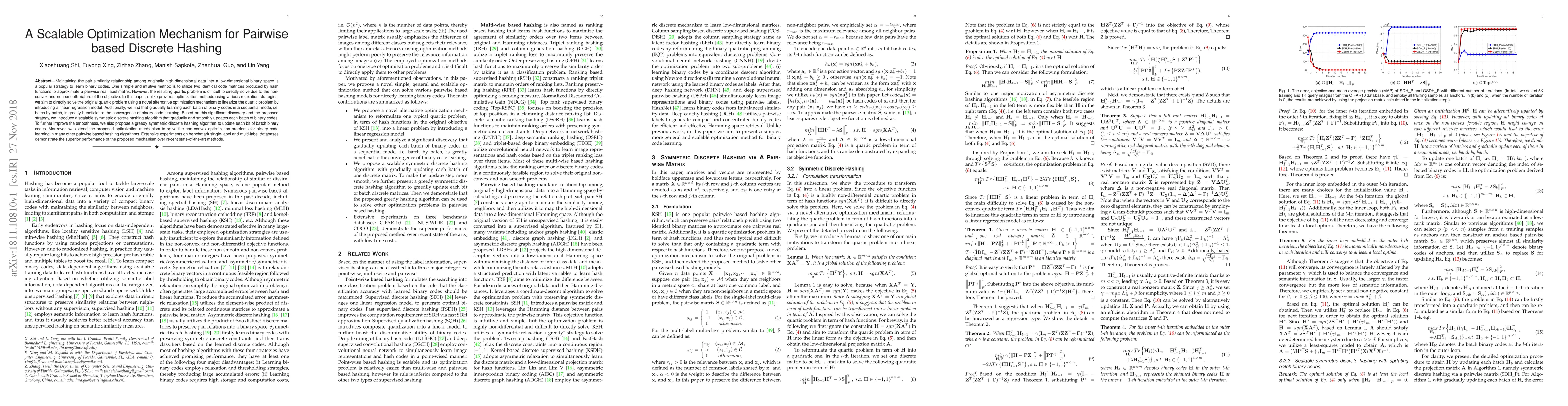 Maintaining the pair similarity relationship among originally high-dimensional data into a low-dimensional binary space is a popular strategy to learn binary codes. One simiple and intutive method is to utilize two identical code matrices produced by hash functions to approximate a pairwise real label matrix. However, the resulting quartic problem is difficult to directly solve due to the non-convex and non-smooth nature of the objective. In this paper, unlike previous optimization methods using various relaxation strategies, we aim to directly solve the original quartic problem using a novel alternative optimization mechanism to linearize the quartic problem by introducing a linear regression model. Additionally, we find that gradually learning each batch of binary codes in a sequential mode, i.e. batch by batch, is greatly beneficial to the convergence of binary code learning. Based on this significant discovery and the proposed strategy, we introduce a scalable symmetric discrete hashing algorithm that gradually and smoothly updates each batch of binary codes. To further improve the smoothness, we also propose a greedy symmetric discrete hashing algorithm to update each bit of batch binary codes. Moreover, we extend the proposed optimization mechanism to solve the non-convex optimization problems for binary code learning in many other pairwise based hashing algorithms. Extensive experiments on benchmark single-label and multi-label databases demonstrate the superior performance of the proposed mechanism over recent state-of-the-art methods.