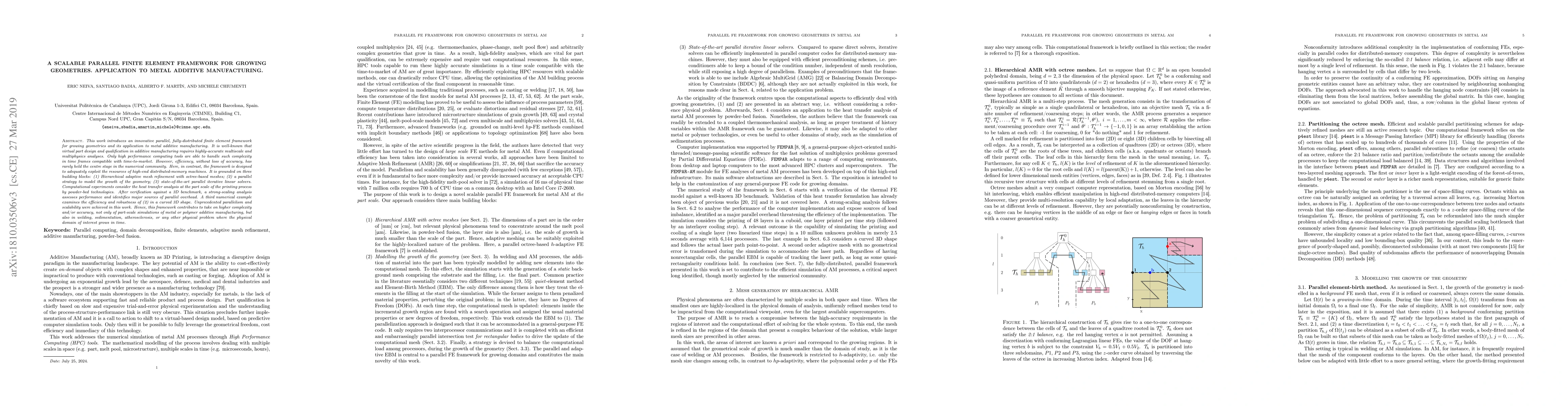 This paper presents a scalable parallel finite element framework for handling growing geometries, specifically applied to metal additive manufacturing. The framework leverages hierarchical adaptive mesh refinement, parallel growth modeling, and advanced iterative solvers, achieving unprecedented parallelism and scalability for complex multiscale and multiphysics simulations.