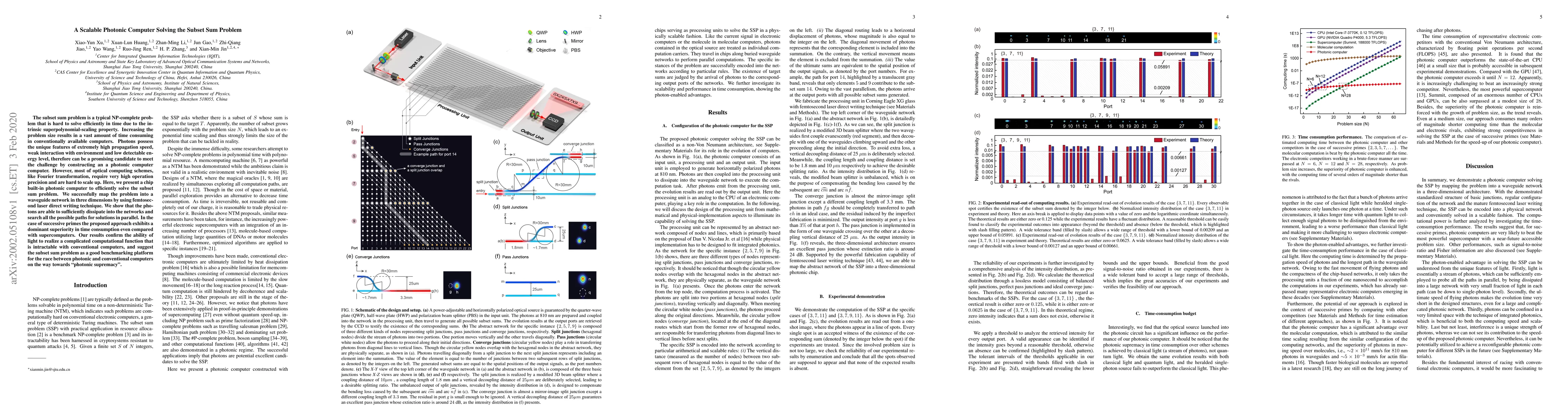 This paper introduces a scalable photonic computer that efficiently solves the NP-complete subset sum problem using a three-dimensional waveguide network created by femtosecond laser direct writing. The proposed photonic approach demonstrates significant time efficiency improvements over conventional computers, especially for large problem sizes.