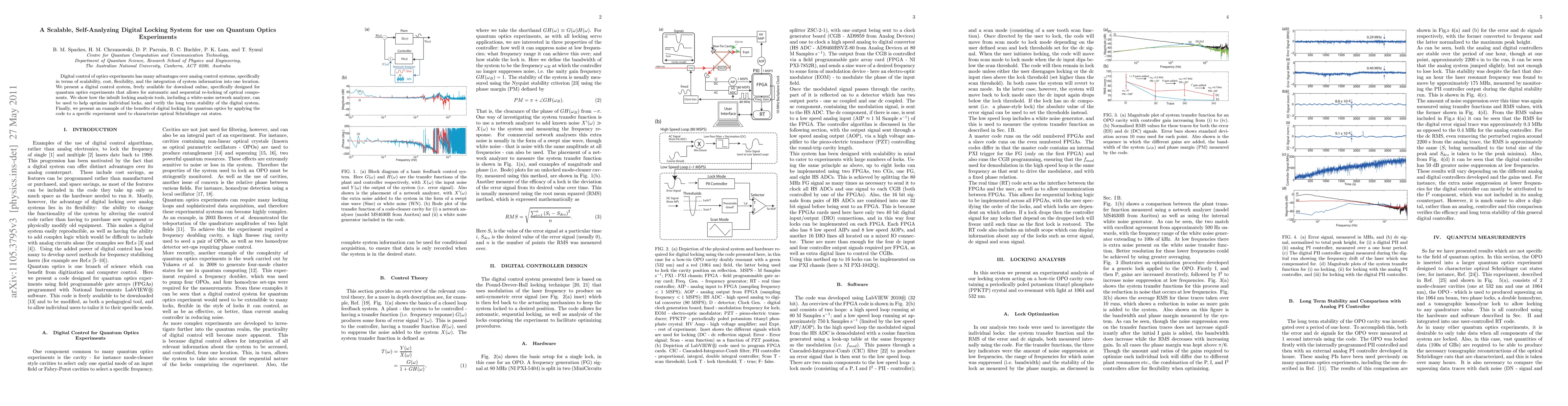 Digital control of optics experiments has many advantages over analog control systems, specifically in terms of scalability, cost, flexibility, and the integration of system information into one location. We present a digital control system, freely available for download online, specifically designed for quantum optics experiments that allows for automatic and sequential re-locking of optical components. We show how the inbuilt locking analysis tools, including a white-noise network analyzer, can be used to help optimize individual locks, and verify the long term stability of the digital system. Finally, we present an example of the benefits of digital locking for quantum optics by applying the code to a specific experiment used to characterize optical Schrodinger cat states.