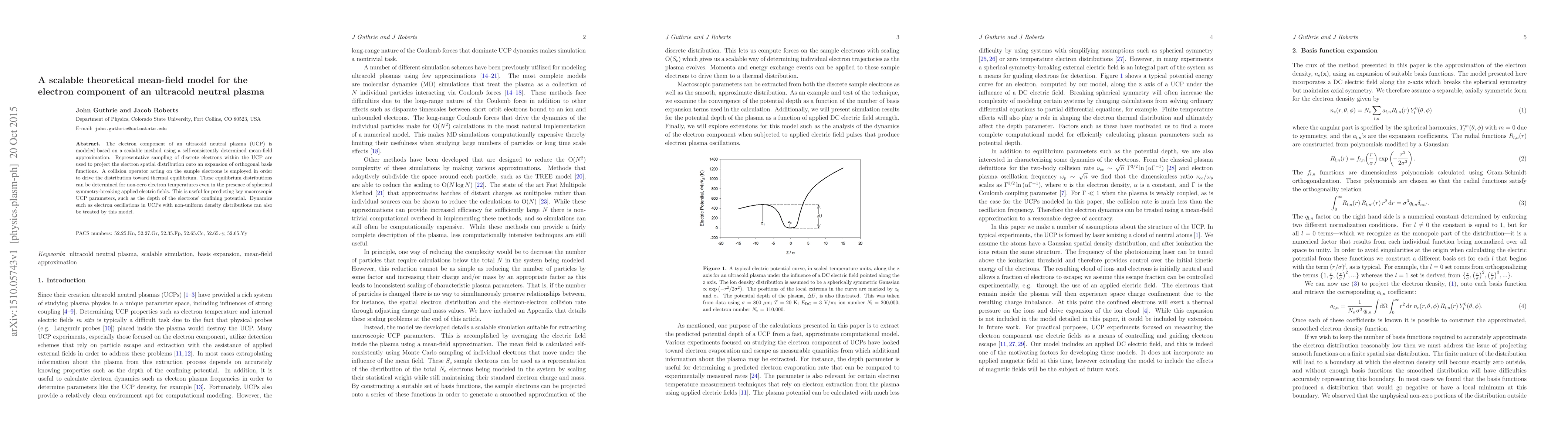 This paper proposes a scalable theoretical mean-field model for the electron component of ultracold neutral plasmas, utilizing self-consistent mean-field approximation and orthogonal basis functions. The model predicts macroscopic parameters and treats dynamics like electron oscillations under non-uniform density distributions.