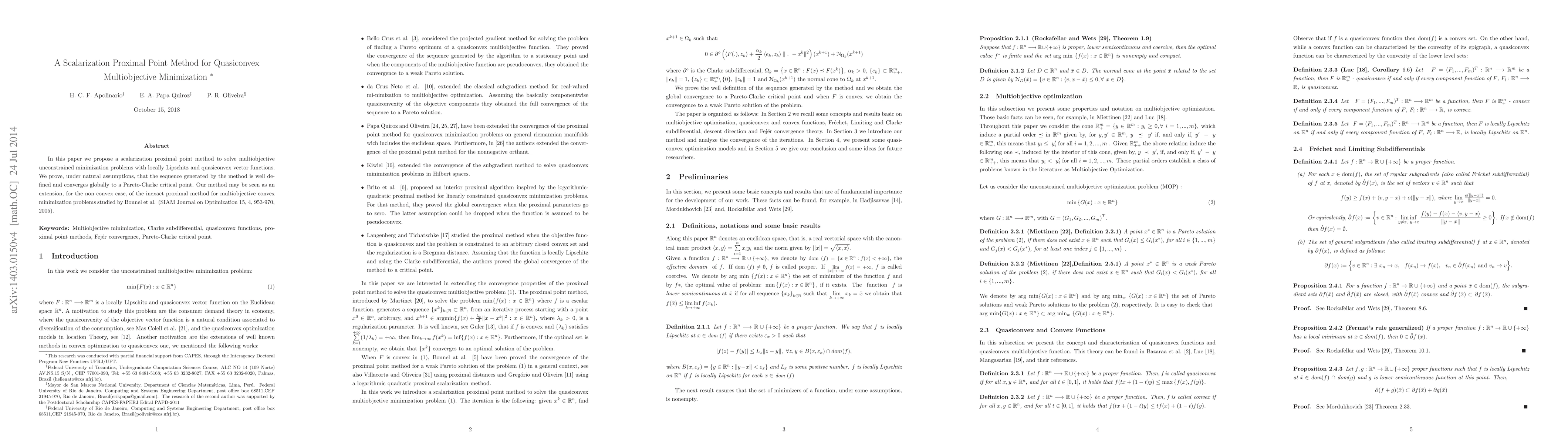 This paper introduces a scalarization proximal point method for solving multiobjective unconstrained minimization involving locally Lipschitz and quasiconvex vector functions, proving global convergence to a Pareto-Clarke critical point under standard assumptions. It extends the inexact proximal method for convex problems to the non-convex case.