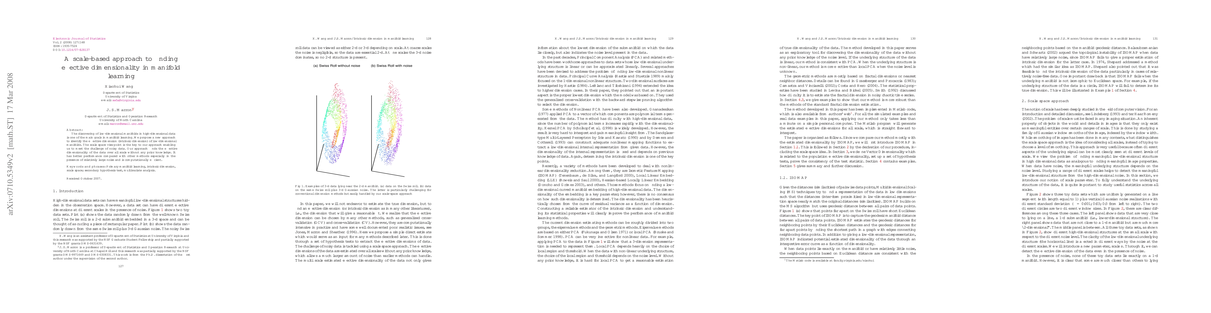 This paper proposes a new approach to identify low-dimensional manifolds in high-dimensional data, using a scale-based method that finds effective dimensionality without prior knowledge, outperforming existing methods in noisy data scenarios.