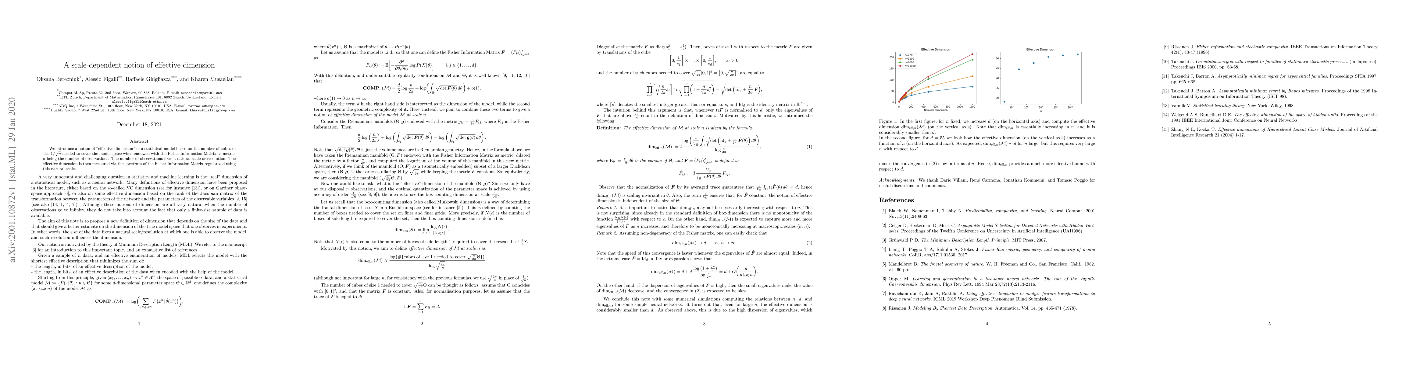 We introduce a notion of "effective dimension" of a statistical model based on the number of cubes of size $1/\sqrt{n}$ needed to cover the model space when endowed with the Fisher Information Matrix as metric, $n$ being the number of observations. The number of observations fixes a natural scale or resolution. The effective dimension is then measured via the spectrum of the Fisher Information Matrix regularized using this natural scale.