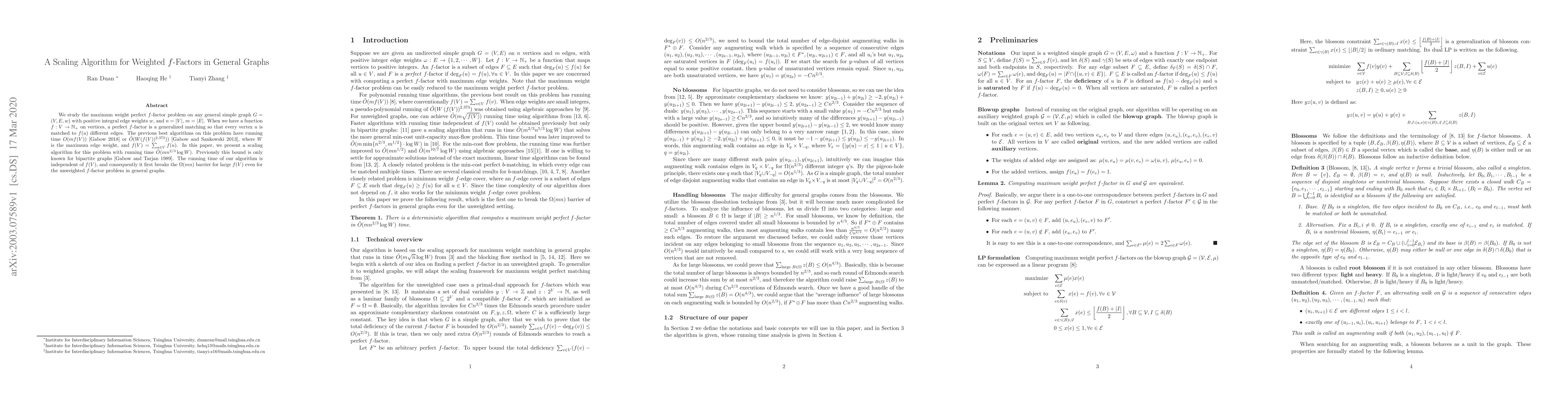 We study the maximum weight perfect $f$-factor problem on any general simple graph $G=(V,E,w)$ with positive integral edge weights $w$, and $n=|V|$, $m=|E|$. When we have a function $f:V\rightarrow \mathbb{N}_+$ on vertices, a perfect $f$-factor is a generalized matching so that every vertex $u$ is matched to $f(u)$ different edges. The previous best algorithms on this problem have running time $O(m f(V))$ [Gabow 2018] or $\tilde{O}(W(f(V))^{2.373}))$ [Gabow and Sankowski 2013], where $W$ is the maximum edge weight, and $f(V)=\sum_{u\in V}f(u)$. In this paper, we present a scaling algorithm for this problem with running time $\tilde{O}(mn^{2/3}\log W)$. Previously this bound is only known for bipartite graphs [Gabow and Tarjan 1989]. The running time of our algorithm is independent of $f(V)$, and consequently it first breaks the $\Omega(mn)$ barrier for large $f(V)$ even for the unweighted $f$-factor problem in general graphs.