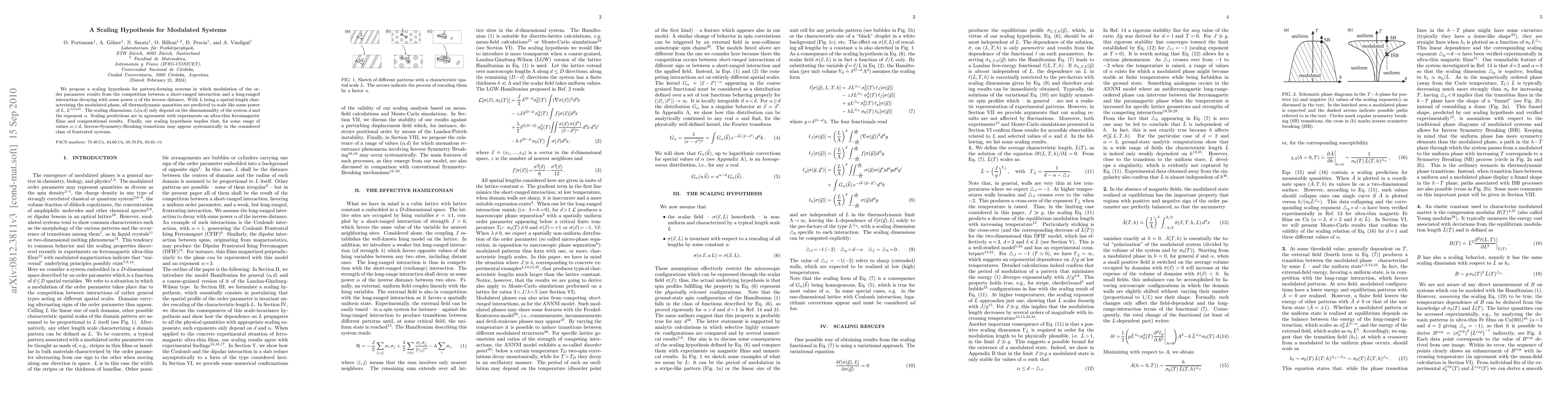 A scaling hypothesis is proposed for modulated systems, predicting that thermodynamic quantities scale with a specific power of spatial length L, depending on system dimensionality and interaction exponent alpha. The theory agrees with experiments and computational results, suggesting the emergence of Inverse-Symmetry-Breaking transitions in certain frustrated systems.