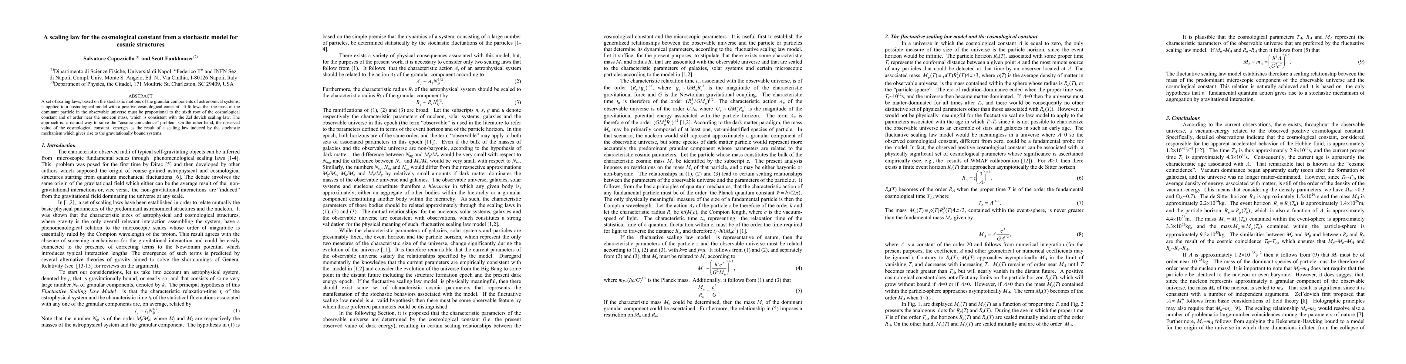 This paper proposes scaling laws derived from stochastic motions in cosmic structures to explain the cosmological constant, suggesting the dominant particle's mass is proportional to the sixth root of the cosmological constant, aligning with nucleon mass and the Zeldovich scaling law, thus offering a solution to the cosmic coincidence problem. The observed cosmological constant value is attributed to a stochastic mechanism shaping gravitationally bound systems.