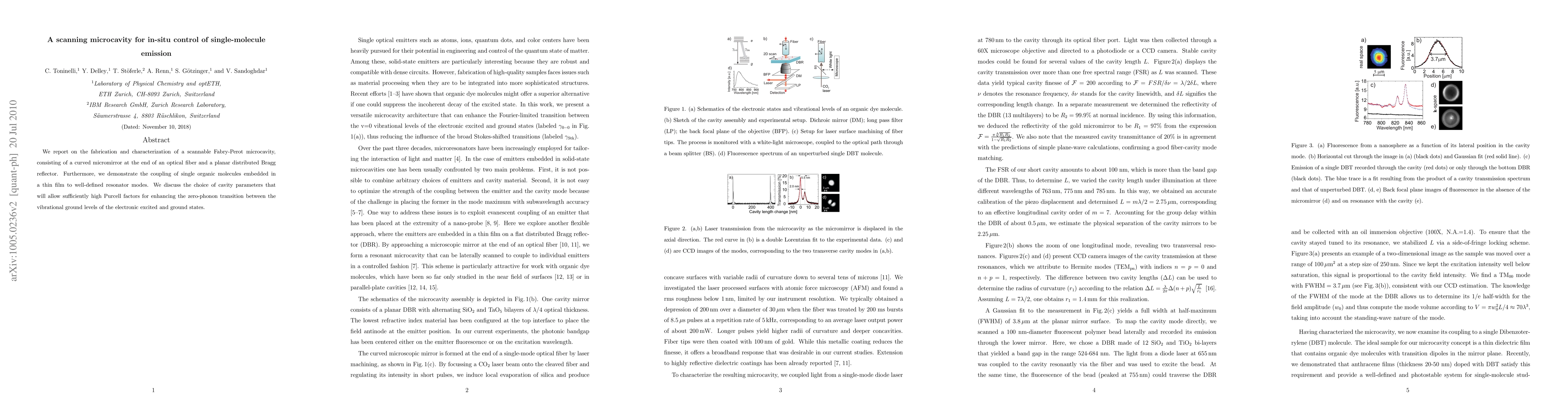 This paper details the fabrication of a scannable Fabry-Perot microcavity for controlling single-molecule emission, and demonstrates its ability to couple with single organic molecules to enhance their zero-phonon transitions through carefully chosen cavity parameters.