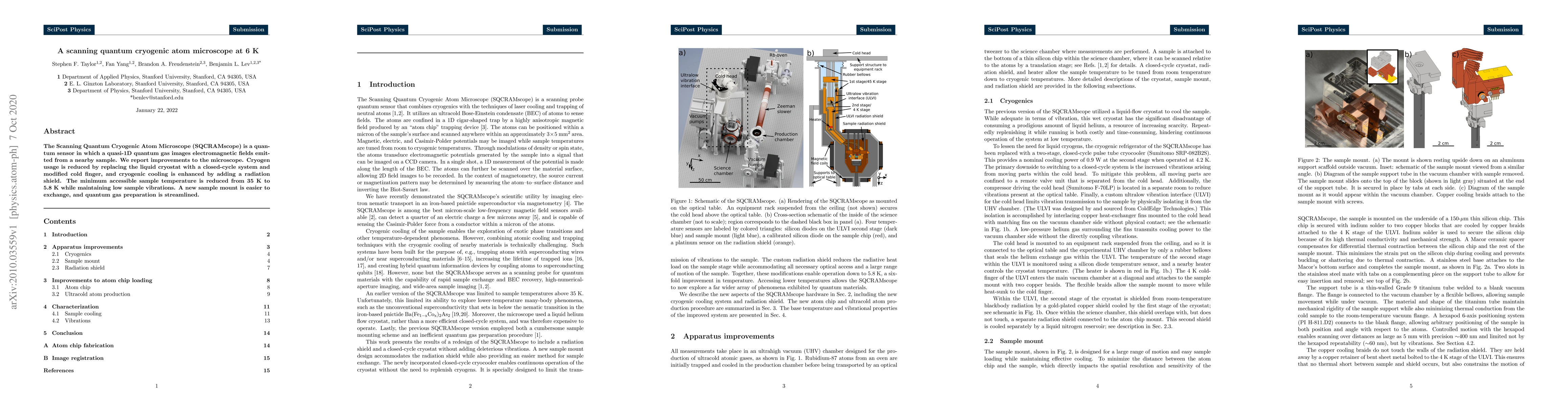 The SQCRAMscope enhances cryogenic imaging by reducing cryogen use and lowering sample temperature to 5.8 K, while improving sample mount exchange and quantum gas preparation.