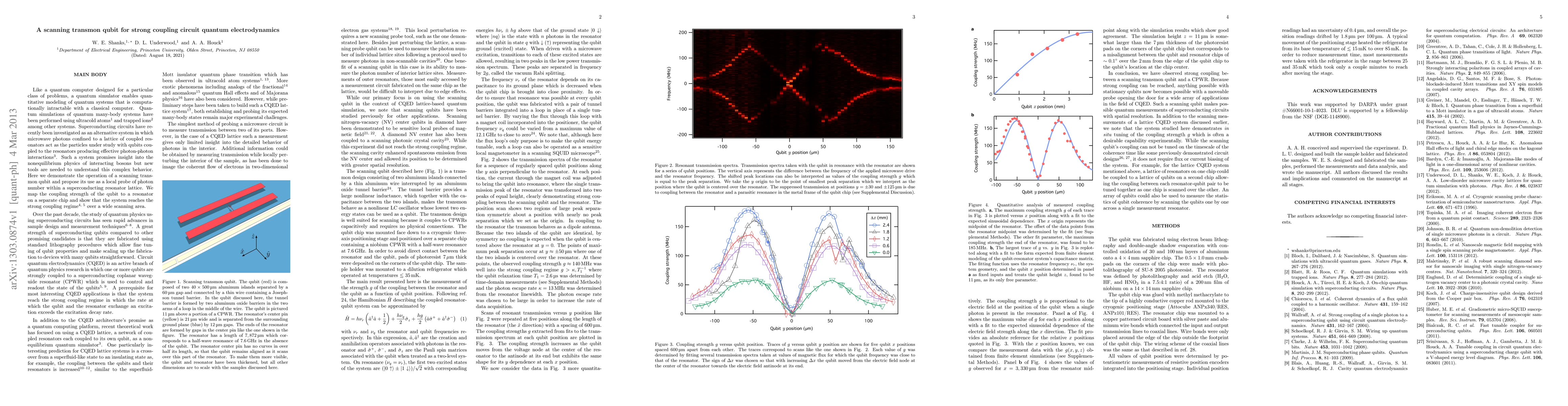 Like a quantum computer designed for a particular class of problems, a quantum simulator enables quantitative modeling of quantum systems that is computationally intractable with a classical computer. Quantum simulations of quantum many-body systems have been performed using ultracold atoms and trapped ions among other systems. Superconducting circuits have recently been investigated as an alternative system in which microwave photons confined to a lattice of coupled resonators act as the particles under study with qubits coupled to the resonators producing effective photon-photon interactions. Such a system promises insight into the nonequilibrium physics of interacting bosons but new tools are needed to understand this complex behavior. Here we demonstrate the operation of a scanning transmon qubit and propose its use as a local probe of photon number within a superconducting resonator lattice. We map the coupling strength of the qubit to a resonator on a separate chip and show that the system reaches the strong coupling regime over a wide scanning area.