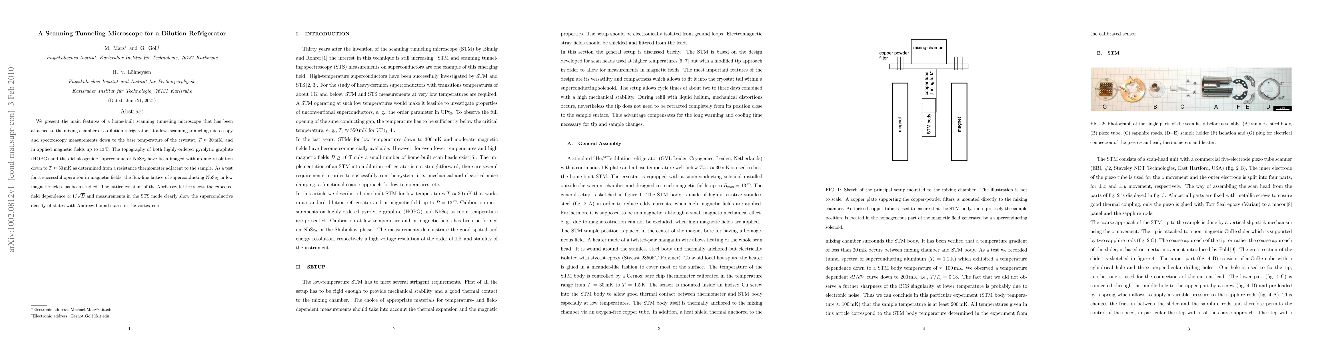 This paper details a home-built scanning tunneling microscope integrated into a dilution refrigerator, enabling atomic-resolution imaging of HOPG and NbSe2 superconductors at base temperatures around 30mK. It successfully studies magnetic field effects on NbSe2, confirming the B^{-0.5} dependence of the Abrikosov lattice and detecting superconductive Andreev bound states.