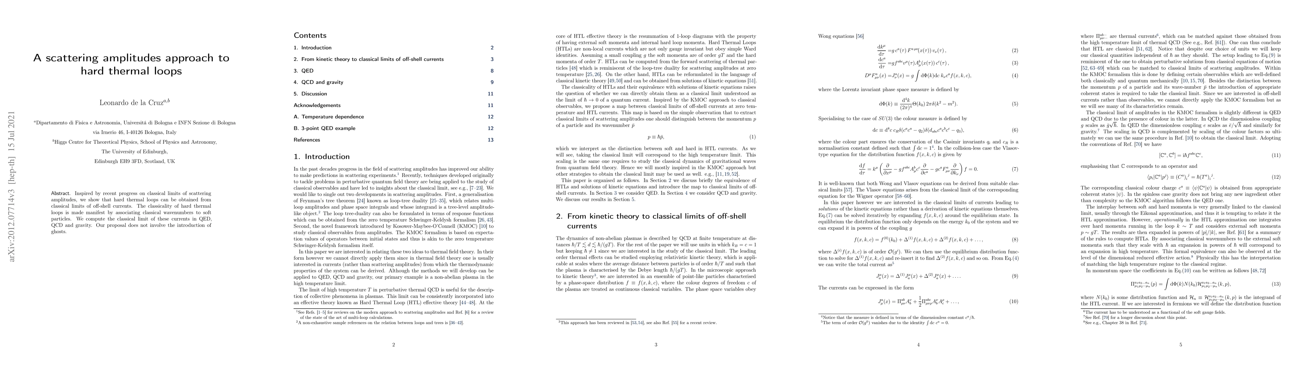 This paper demonstrates that hard thermal loops can be derived from classical limits of off-shell currents, associating classical wavenumbers to soft particles. It computes these limits in QED, QCD, and gravity without introducing ghosts.