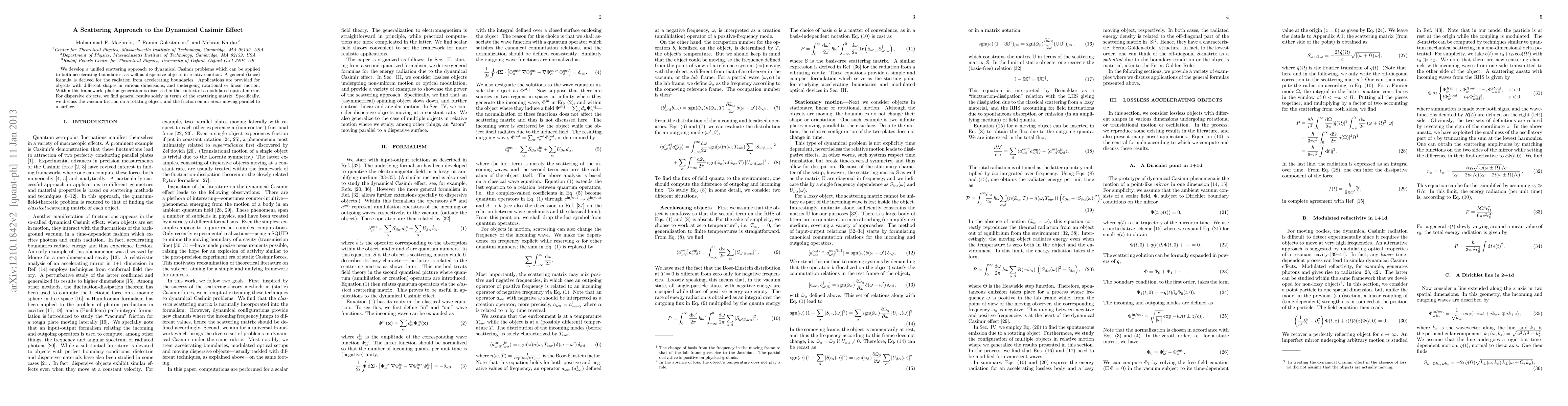 This paper presents a unified scattering approach to the dynamical Casimir effect, applicable to both accelerating boundaries and dispersive objects in relative motion. It derives a general formula for radiation from accelerating boundaries and discusses photon generation in modulated optical mirrors, as well as vacuum friction on a rotating object and an atom moving parallel to a surface.