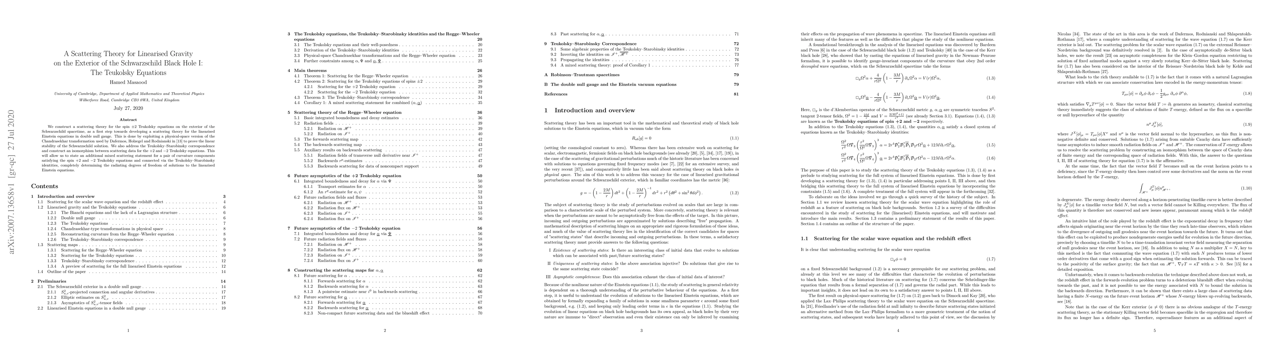 This paper develops a scattering theory for the spin ±2 Teukolsky equations on the Schwarzschild black hole exterior, employing a physical-space Chandrasekhar transformation and establishing an isomorphism between the scattering data for the +2 and -2 Teukolsky equations.