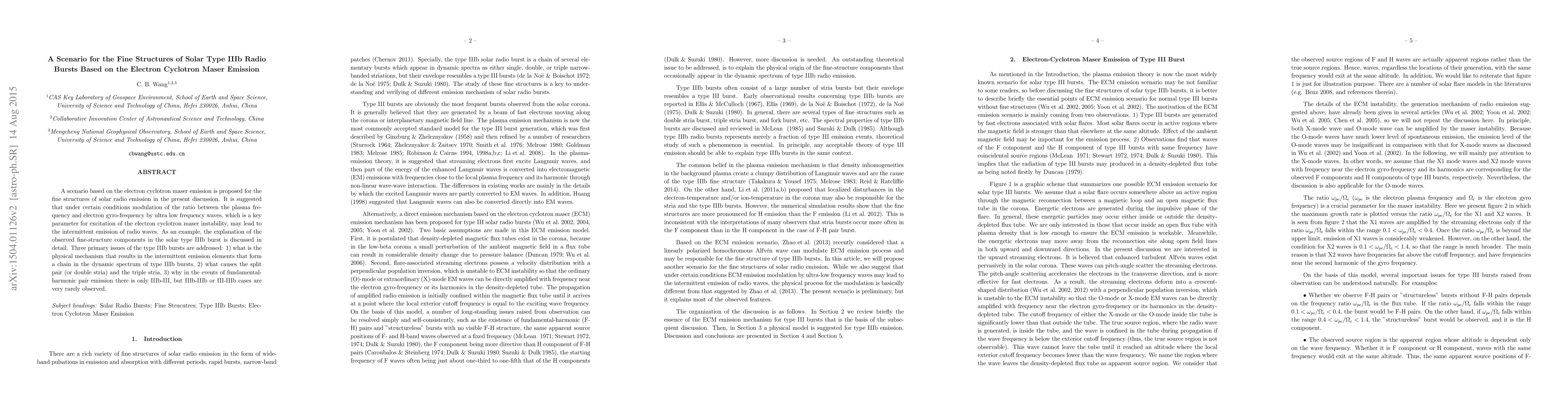 A scenario based on the electron cyclotron maser emission is proposed for the fine structures of solar radio emission in the present discussion. It is suggested that under certain conditions modulation of the ratio between the plasma frequency and electron gyro-frequency by ultra low frequency waves, which is a key parameter for excitation of the electron cyclotron maser instability, may lead to the intermittent emission of radio waves. As an example, the explanation of the observed fine-structure components in the solar type IIIb burst is discussed in detail. Three primary issues of the type IIIb bursts are addressed: 1) what is the physical mechanism that results in the intermittent emission elements that form a chain in the dynamic spectrum of type IIIb bursts, 2) what causes the split pair (or double stria) and the triple stria, 3) why in the events of fundamental-harmonic pair emission there is only IIIb-III, but IIIb-IIIb or III-IIIb cases are very rarely observed.