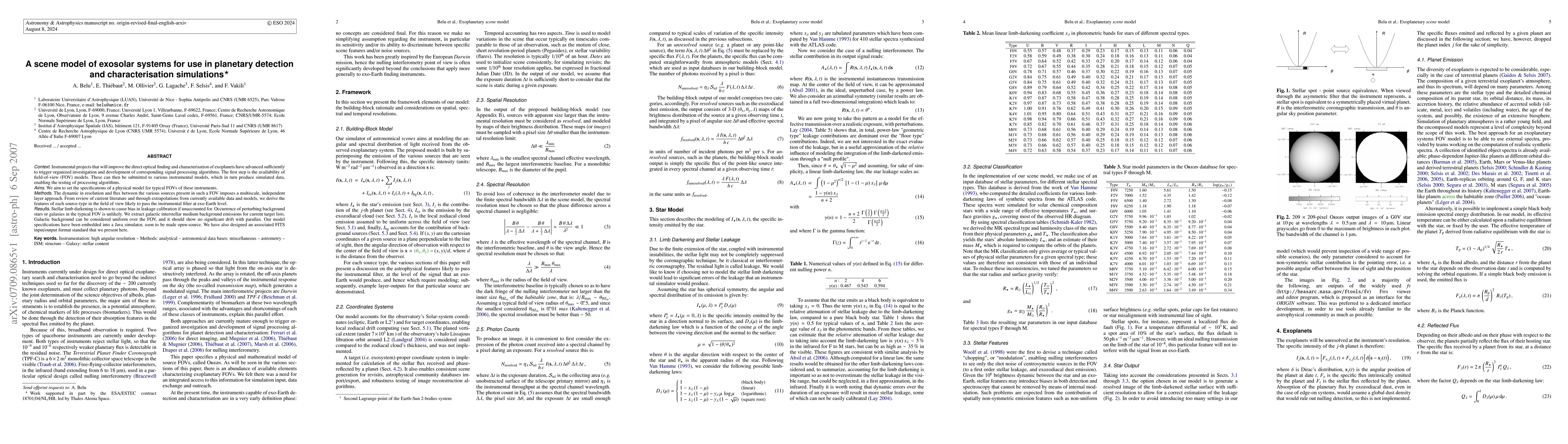 Instrumental projects that will improve the direct optical finding and characterisation of exoplanets have advanced sufficiently to trigger organized investigation and development of corresponding signal processing algorithms. The first step is the availability of field-of-view (FOV) models. These can then be submitted to various instrumental models, which in turn produce simulated data, enabling the testing of processing algorithms. We aim to set the specifications of a physical model for typical FOVs of these instruments. The dynamic in resolution and flux between the various sources present in such a FOV imposes a multiscale, independent layer approach. From review of current literature and through extrapolations from currently available data and models, we derive the features of each source-type in the field of view likely to pass the instrumental filter at exo-Earth level. Stellar limb darkening is shown to cause bias in leakage calibration if unaccounted for. Occurrence of perturbing background stars or galaxies in the typical FOV is unlikely. We extract galactic interstellar medium background emissions for current target lists. Galactic background can be considered uniform over the FOV, and it should show no significant drift with parallax. Our model specifications have been embedded into a Java simulator, soon to be made open-source. We have also designed an associated FITS input/output format standard that we present here.