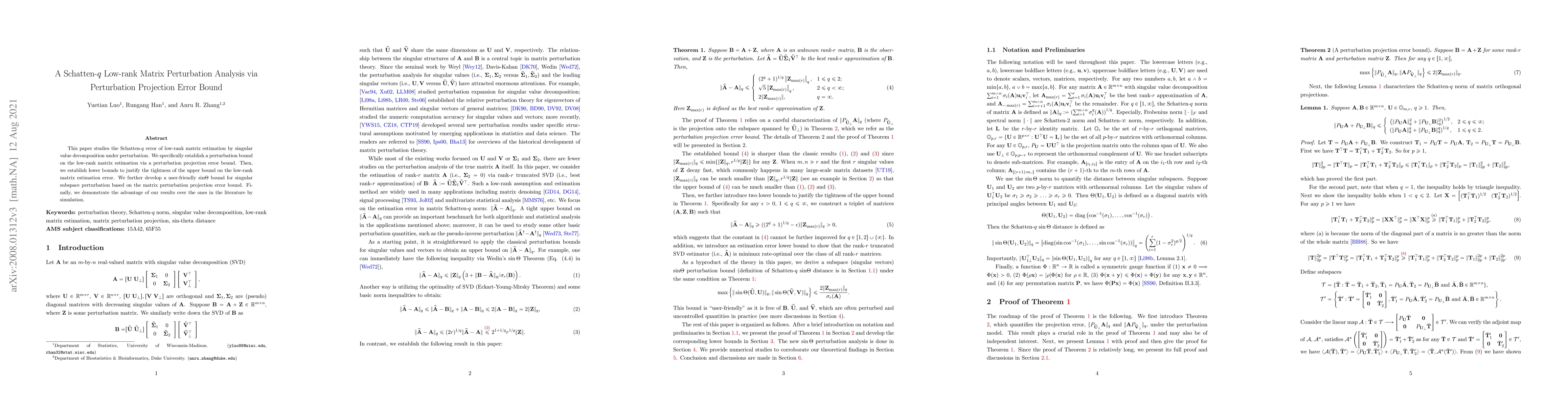 This paper investigates the Schatten-$q$ error in low-rank matrix estimation via singular value decomposition under perturbation, establishing upper and lower bounds on the perturbation projection error and developing a new sin$\Theta$ bound for singular subspace perturbation, ultimately demonstrating its advantages through simulations.