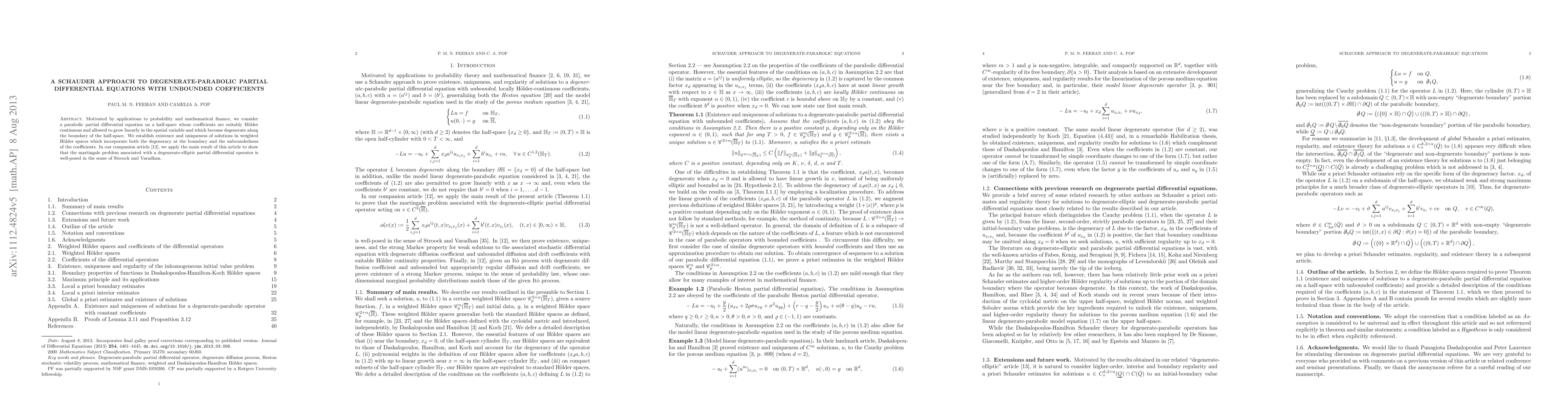 This paper establishes existence and uniqueness of solutions for degenerate-parabolic partial differential equations with unbounded, Holder continuous coefficients using a Schauder approach. The results are applied in a companion article to demonstrate the well-posedness of the martingale problem for degenerate-elliptic operators in mathematical finance.