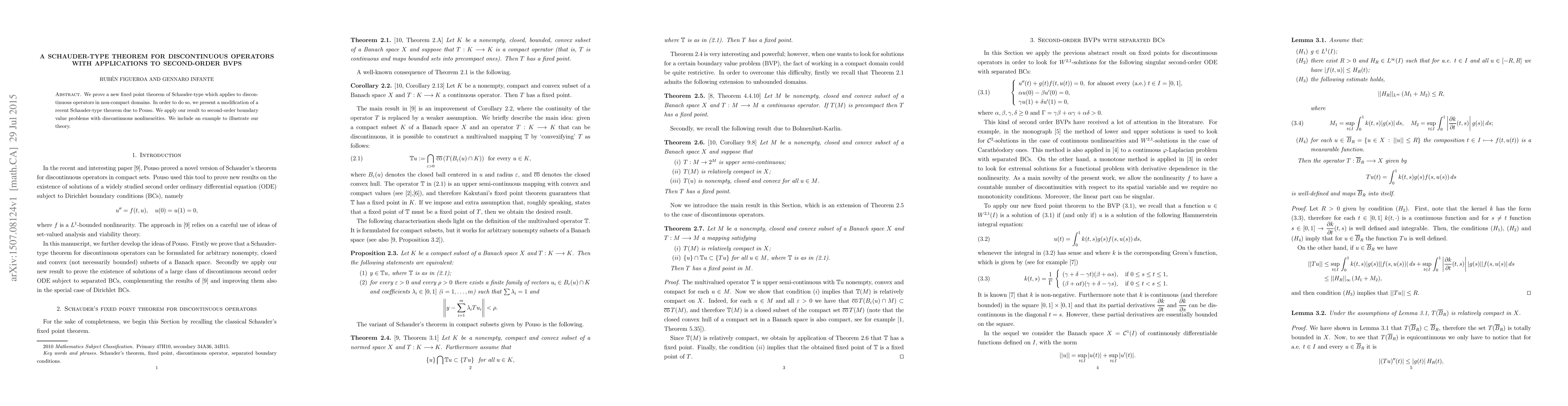 We prove a new fixed point theorem of Schauder-type which applies to discontinuous operators in non-compact domains. In order to do so, we present a modification of a recent Schauder-type theorem due to Pouso. We apply our result to second-order boundary value problems with discontinuous nonlinearities. We include an example to illustrate our theory.
