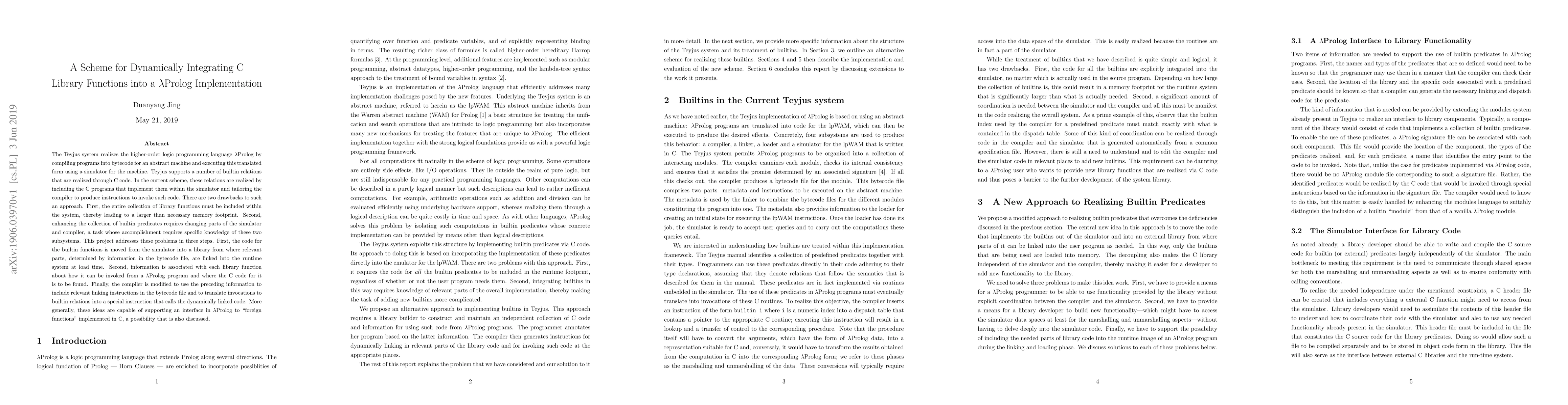 A new approach allows C library functions to be dynamically integrated into a $λ$Prolog implementation without including their code in the system, reducing memory footprint and enabling easier updates.