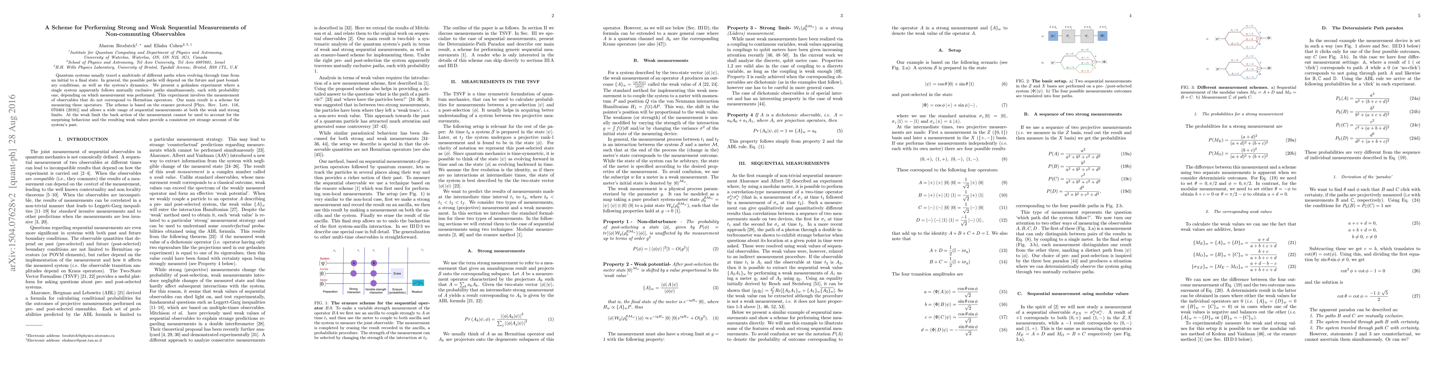 Researchers propose a scheme for measuring non-commuting observables in quantum systems, allowing for simultaneous measurement of mutually exclusive paths with probability one. This allows for consistent yet strange accounts of the system's past at both weak and strong limits.