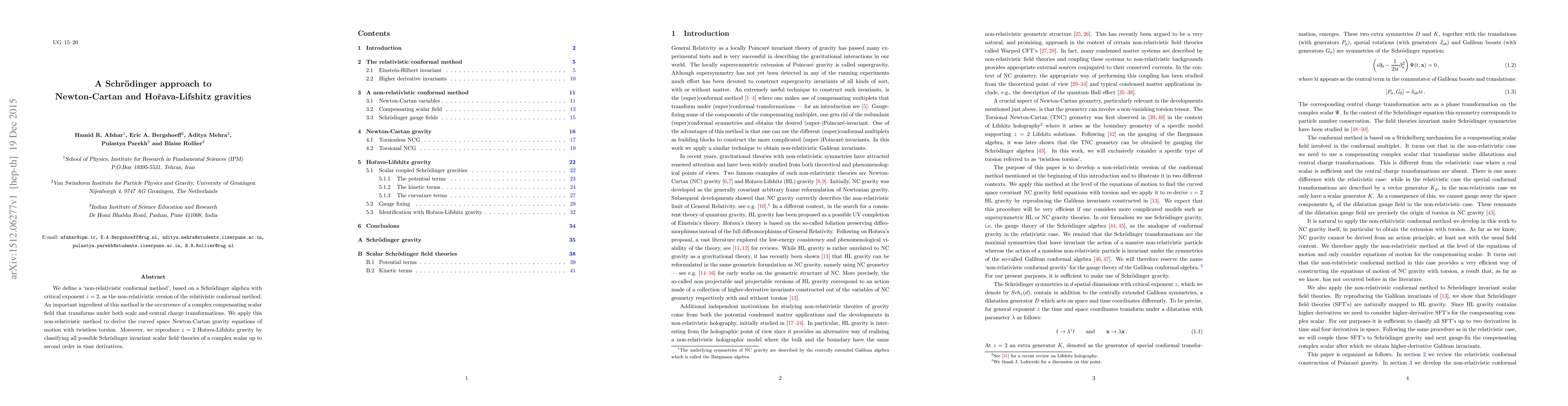 This paper introduces a non-relativistic conformal method based on the Schrödinger algebra to derive Newton-Cartan gravity and Hořava-Lifshitz gravity. It employs a complex scalar field to transform under scale and central charge transformations and successfully formulates both gravity theories.