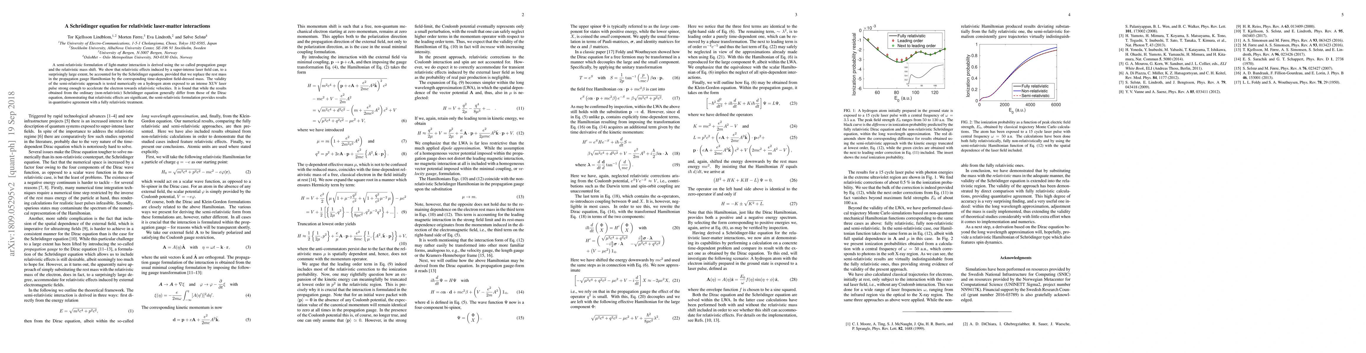 A semi-relativistic formulation of light-matter interaction is derived using the so called propagation gauge and the relativistic mass shift. We show that relativistic effects induced by a super-intense laser field can, to a surprisingly large extent, be accounted for by the Schr{\"o}dinger equation, provided that we replace the rest mass in the propagation gauge Hamiltonian by the corresponding time-dependent field-dressed mass. The validity of the semi-relativistic approach is tested numerically on a hydrogen atom exposed to an intense XUV laser pulse strong enough to accelerate the electron towards relativistic velocities. It is found that while the results obtained from the ordinary (non-relativistic) Schr{\"o}dinger equation generally differ from those of the Dirac equation, merely demonstrating that relativistic effects are significant, the semi-relativistic formulation provides results in quantitative agreement with a fully relativistic treatment.