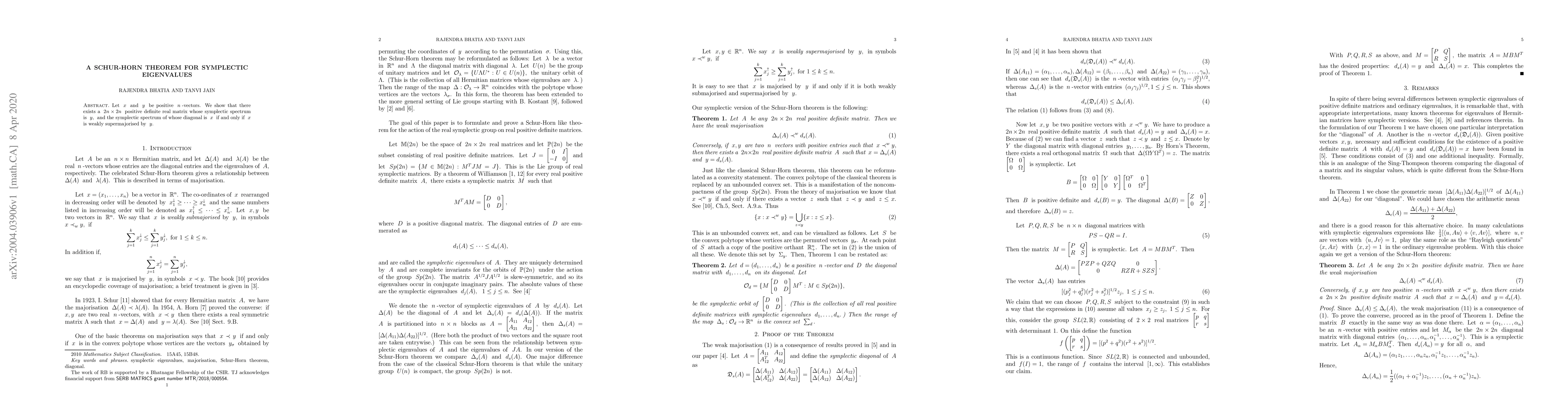 This paper establishes a Schur-Horn theorem for symplectic eigenvalues, showing that a specific positive definite matrix exists with desired properties if and only if one vector is weakly supermajorised by another.