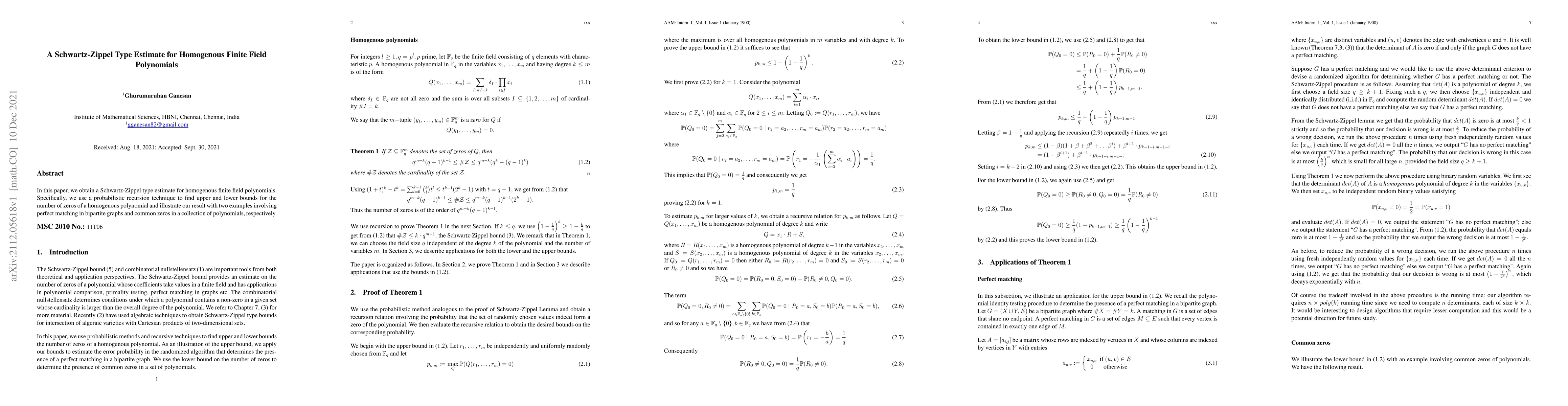 Researchers develop a probabilistic method to estimate the number of zeros of homogenous finite field polynomials, with implications for solving equations in algebraic geometry.