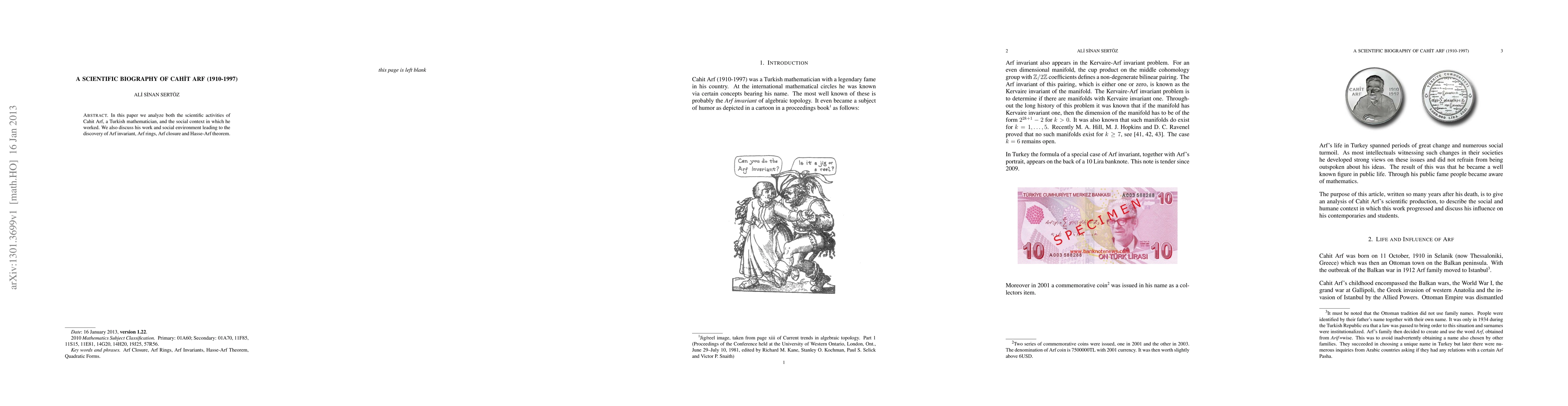 This paper explores the scientific contributions of Turkish mathematician Cahit Arf, focusing on his discovery of the Arf invariant, Arf rings, Arf closure, and the Hasse-Arf theorem, alongside the social context that shaped his work.