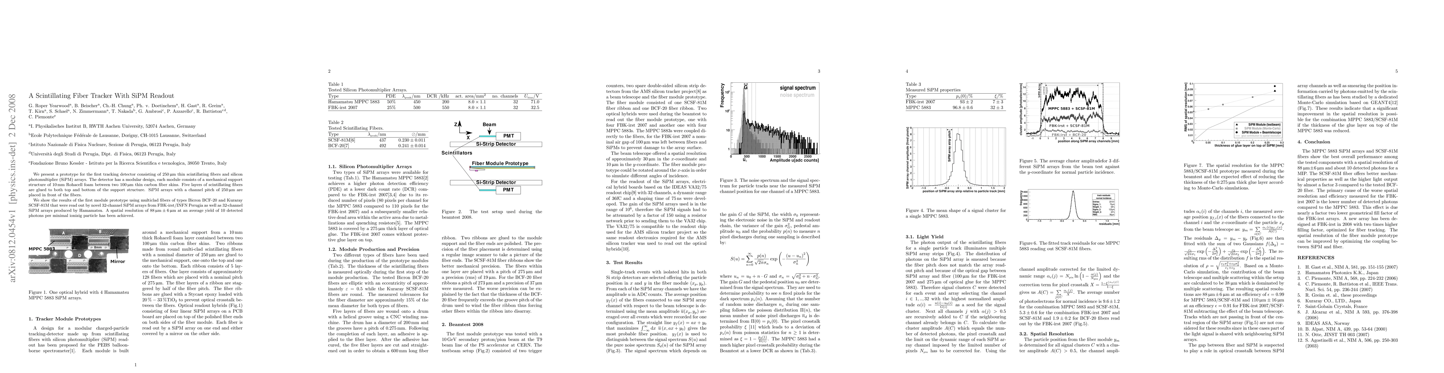 A prototype for a tracking detector consisting of 250 micron thin scintillating fibers and silicon photomultiplier (SiPM) arrays was developed.