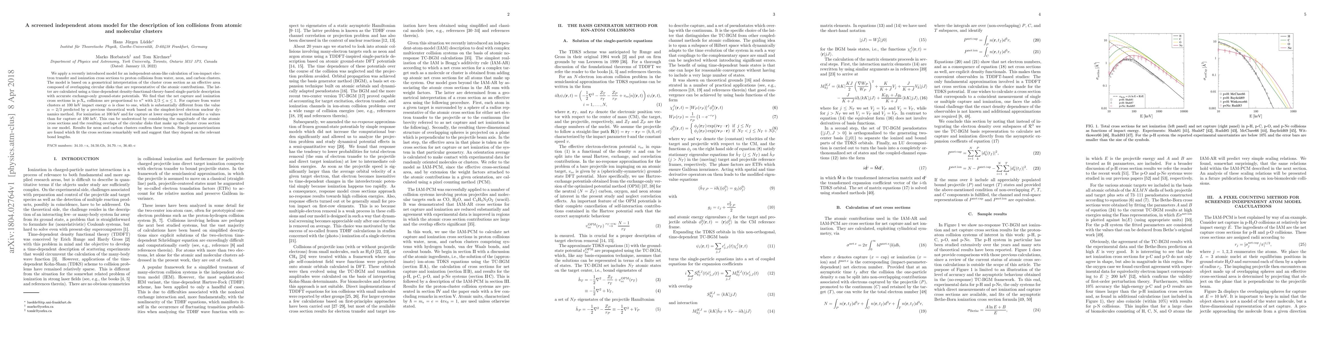 This paper applies a screened independent atom model to calculate ion-impact electron transfer and ionization cross sections in proton collisions with water, neon, and carbon clusters. The model finds that the cross sections are proportional to $n^\alpha$ with $2/3 \le \alpha \le 1$, differing from previous theoretical predictions, and suggests that the dependence on bond lengths can be parametrized.