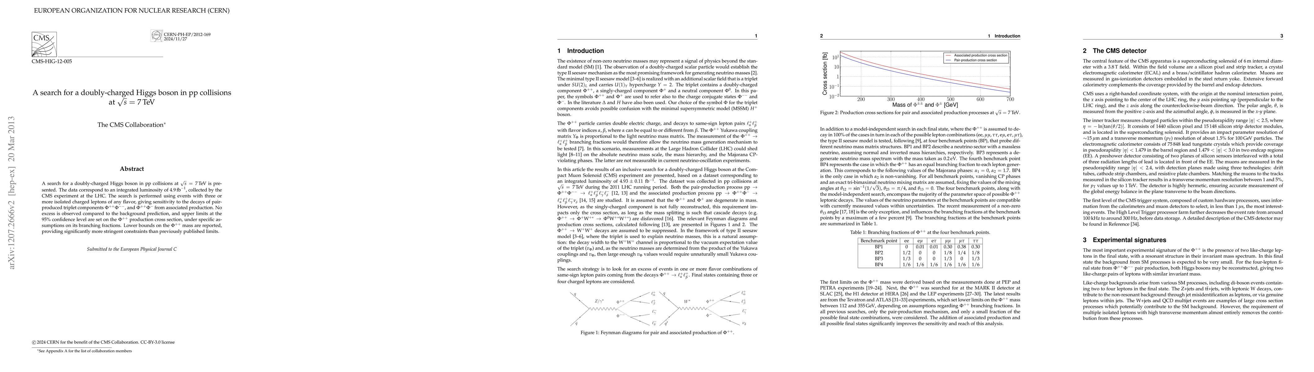 This paper reports a search for a doubly-charged Higgs boson in pp collisions at 7 TeV using the CMS experiment at the LHC, analyzing data with three or more isolated charged leptons. No evidence of the Higgs boson was found, and new stringent lower mass limits were established.