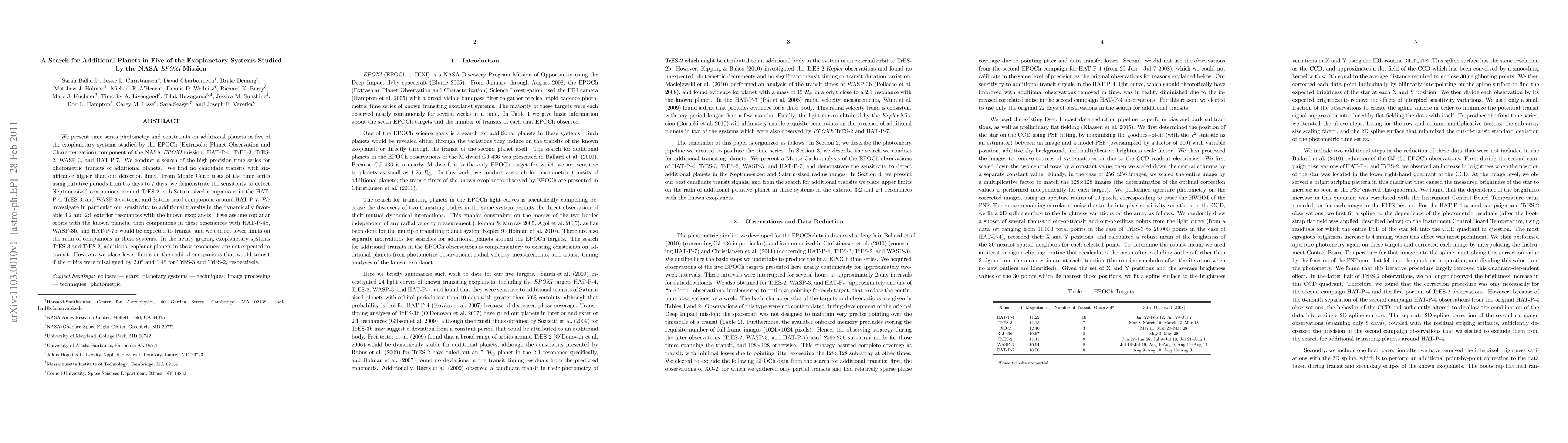 This study uses high-precision photometry from the NASA EPOXI mission to search for additional planets in five exoplanetary systems, finding no significant transits. The research sets lower limits on the radii of potential companions in certain systems, particularly in resonant configurations.