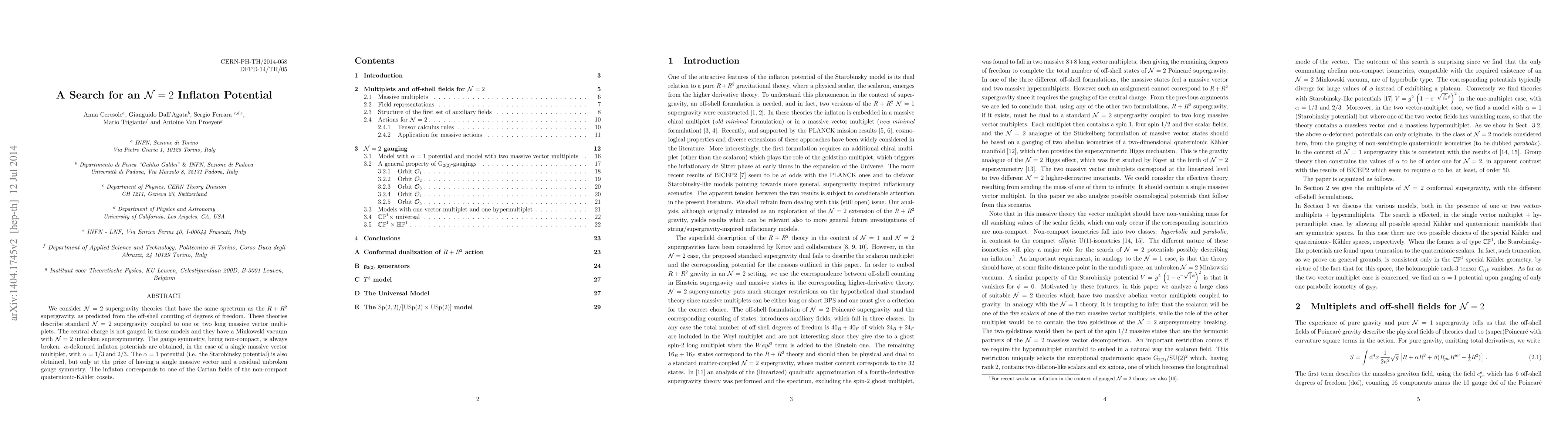 We consider N=2 supergravity theories that have the same spectrum as the R+R^2 supergravity, as predicted from the off-shell counting of degrees of freedom. These theories describe standard N=2 supergravity coupled to one or two long massive vector multiplets. The central charge is not gauged in these models and they have a Minkowski vacuum with N=2 unbroken supersymmetry. The gauge symmetry, being non-compact, is always broken. $\alpha$-deformed inflaton potentials are obtained, in the case of a single massive vector multiplet, with $\alpha=1/3$ and $2/3$. The $\alpha=1$ potential (i.e. the Starobinsky potential) is also obtained, but only at the prize of having a single massive vector and a residual unbroken gauge symmetry. The inflaton corresponds to one of the Cartan fields of the non-compact quaternionic-K{\"a}hler cosets.