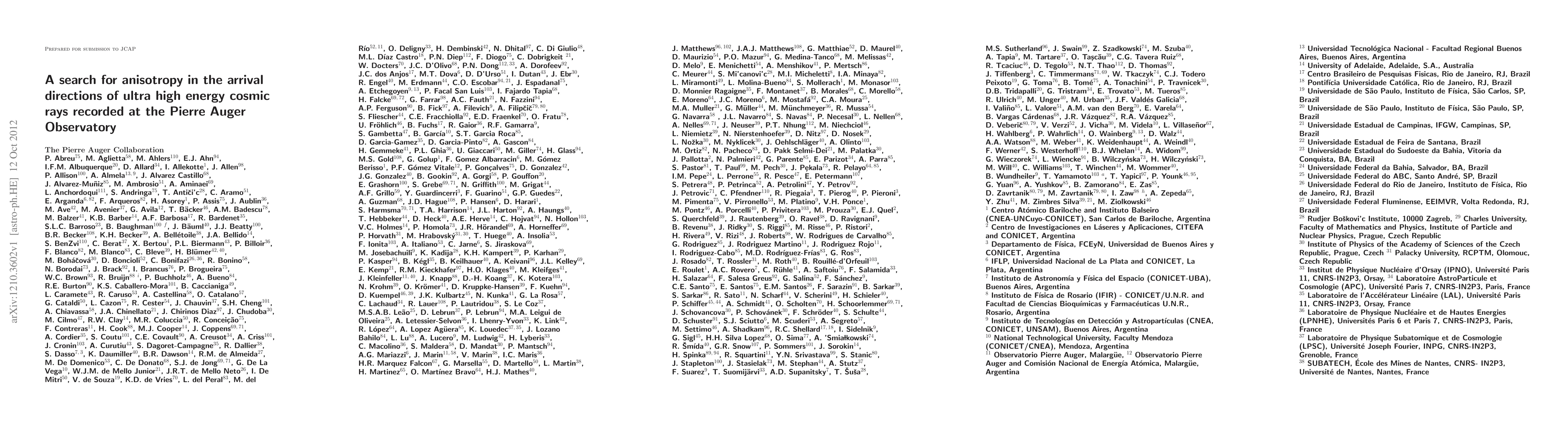 Researchers searched for anisotropy in ultra high energy cosmic rays using three catalog-independent methods at the Pierre Auger Observatory. They found no strong evidence of anisotropy with P-values above 1%.