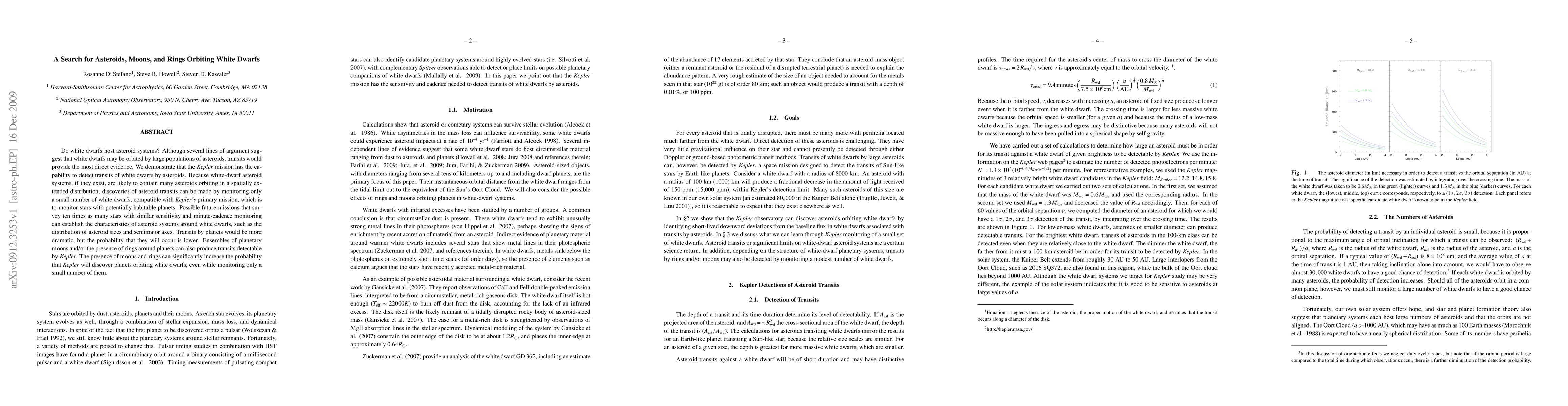 This paper explores the potential for asteroid systems around white dwarfs using Kepler mission data, demonstrating that transits can provide direct evidence. It suggests that future missions could further study these systems to determine asteroid distributions and the presence of moons and rings.