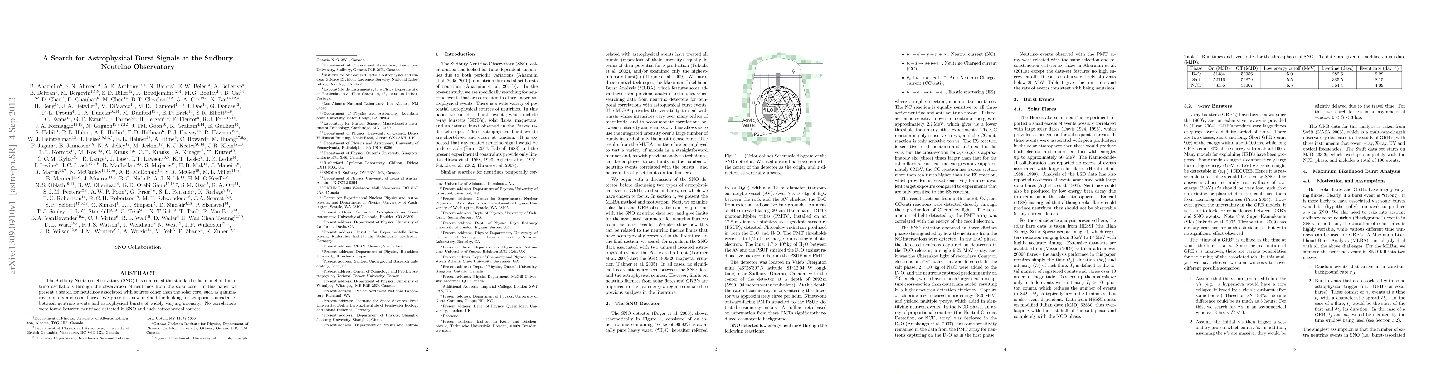 The Sudbury Neutrino Observatory (SNO) searched for neutrinos from astrophysical sources like gamma-ray bursters and solar flares, but found no correlations between detected neutrinos and these bursts. This study introduces a new method for temporal coincidence analysis.