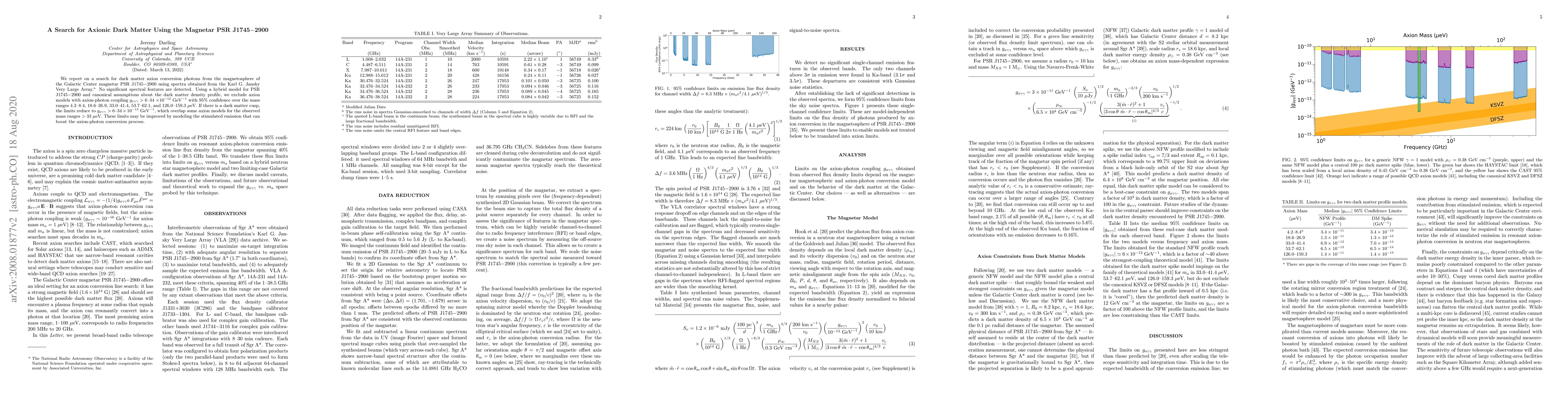 We report on a search for dark matter axion conversion photons from the magnetosphere of the Galactic Center magnetar PSR J1745-2900 using spectra obtained from the Karl G. Jansky Very Large Array. No significant spectral features are detected. Using a hybrid model for PSR J1745-2900 and canonical assumptions about the dark matter density profile, we exclude axion models with axion-photon coupling $g_{a\gamma\gamma}$ > 6-34 x 10$^{-12}$ GeV$^{-1}$ with 95% confidence over the mass ranges 4.2-8.4, 18.6-26.9, 33.0-41.4, 53.7-62.1, and 126.0-159.3 $\mu$eV. If there is a dark matter cusp, the limits reduce to $g_{a\gamma\gamma}$ > 6-34 x 10$^{-14}$ GeV$^{-1}$, which overlap some axion models for the observed mass ranges > 33 $\mu$eV. These limits may be improved by modeling the stimulated emission that can boost the axion-photon conversion process.
