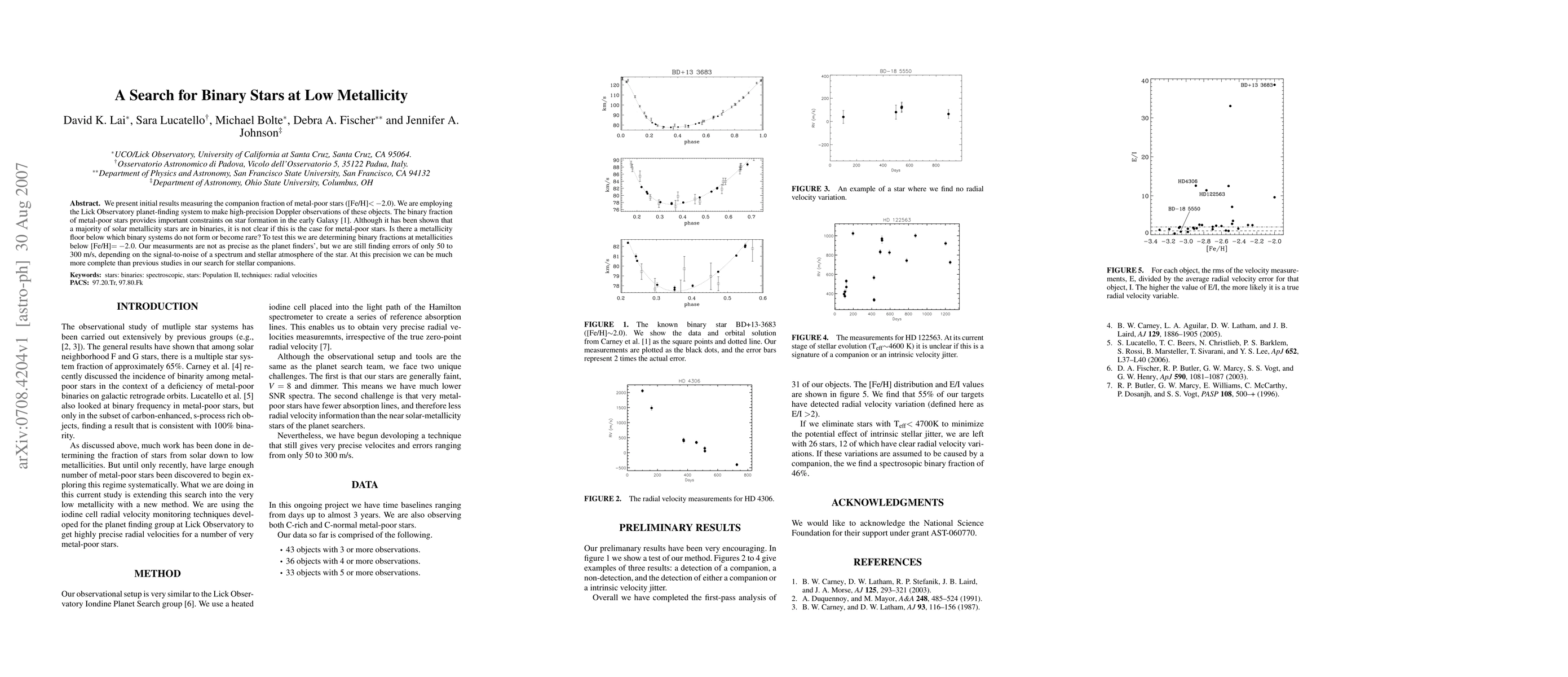 We present initial results measuring the companion fraction of metal-poor stars ([Fe/H]$<-$2.0). We are employing the Lick Observatory planet-finding system to make high-precision Doppler observations of these objects. The binary fraction of metal-poor stars provides important constraints on star formation in the early Galaxy (Carney et al. 2003). Although it has been shown that a majority of solar metallicity stars are in binaries, it is not clear if this is the case for metal-poor stars. Is there a metallicity floor below which binary systems do not form or become rare? To test this we are determining binary fractions at metallicities below [Fe/H]$=-2.0$. Our measurments are not as precise as the planet finders', but we are still finding errors of only 50 to 300 m/s, depending on the signal-to-noise of a spectrum and stellar atmosphere of the star. At this precision we can be much more complete than previous studies in our search for stellar companions.